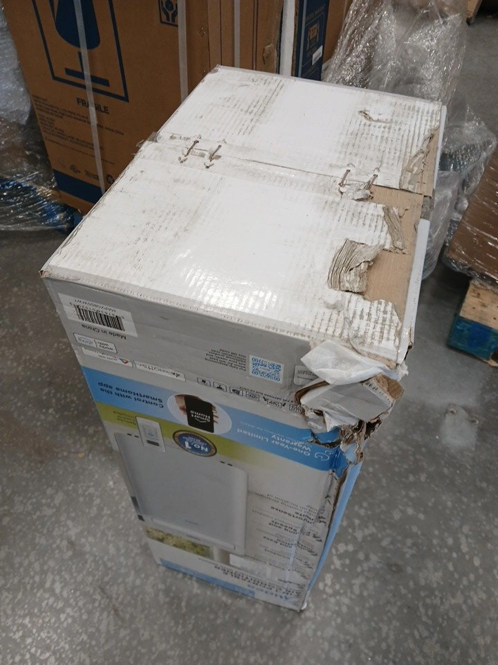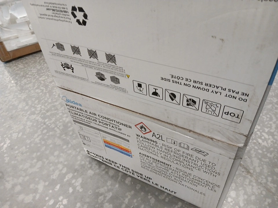 Keep cool with this Midea SmartCool portable air conditioner, boasting 12000 BTU ASHRAE (8000 BTU DOE) for effective cooling, new in a damaged box. The unit features smart control capabilities, working with both Google Home and Alexa for seamless integration into your smart home ecosystem. Although the box has some battle scars, the unit itself is in perfect condition, ready to combat the summer heat.