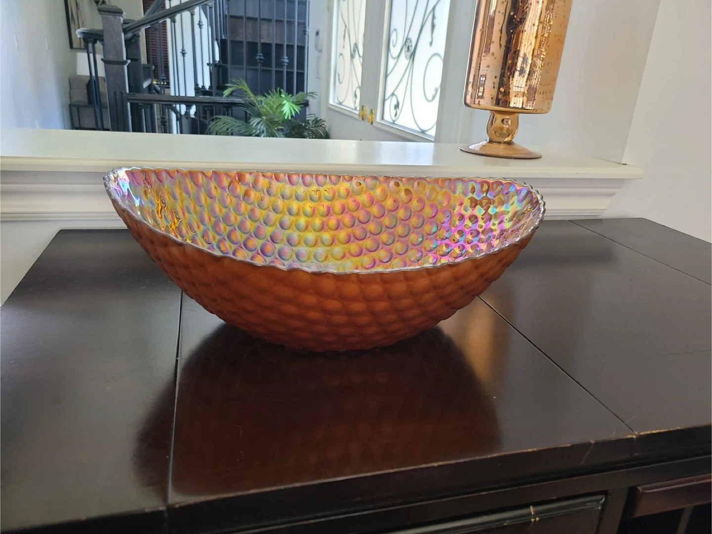 71Beautiful decorative bowl with an iridescent finish! It's in great condition and would look lovely as a centrepiece or accent piece in any room