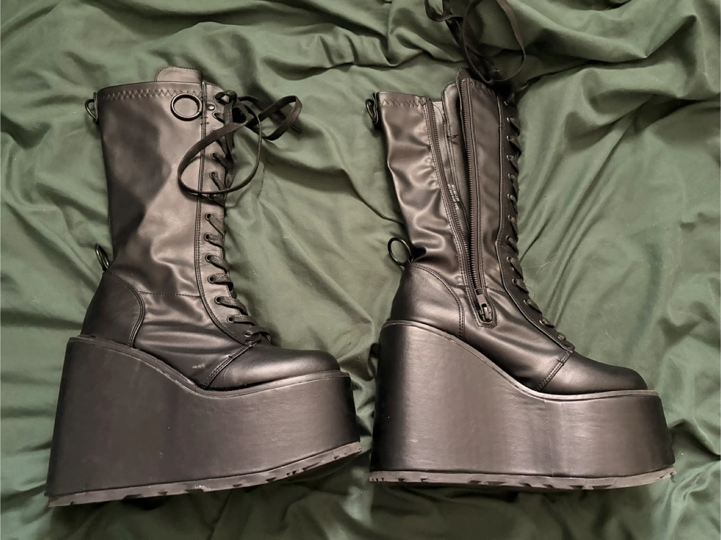 Demonia Swing-150 Women’s Size 8 boots. Brand new, worn once to try on. Thought I’d get used to them but I didn’t, have just sat in the box since. Missed the window to return them.