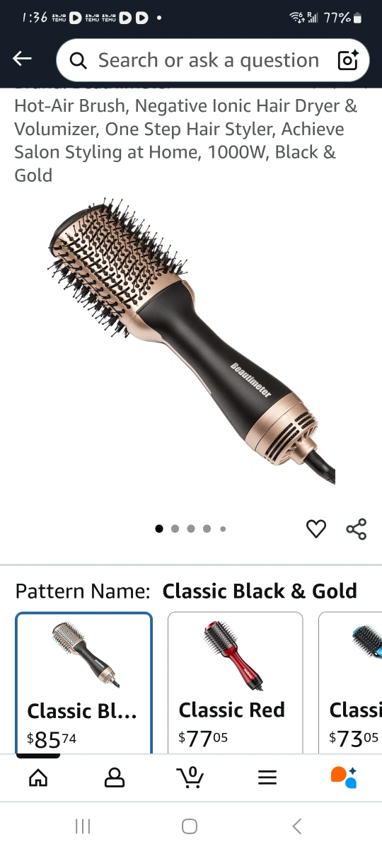 85Selling a Beautimeter hot-air brush in classic black and gold! It's a negative ionic hair dryer and volumizer, so you can achieve salon-style results at home. The brush is 1000W and comes with the original box and instructions included