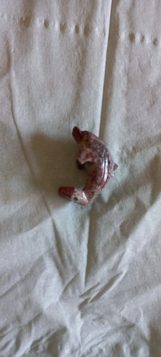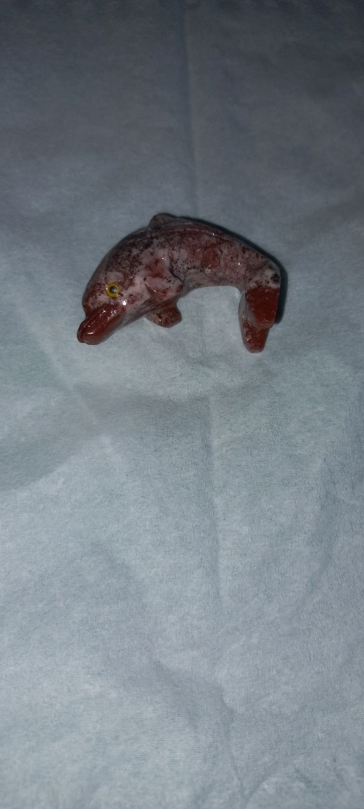 A cute little dolphin figurine made of stone! It's in great shape and would look lovely on a shelf or desk. It's a unique piece to add to your collection or as a gift for a dolphin lover