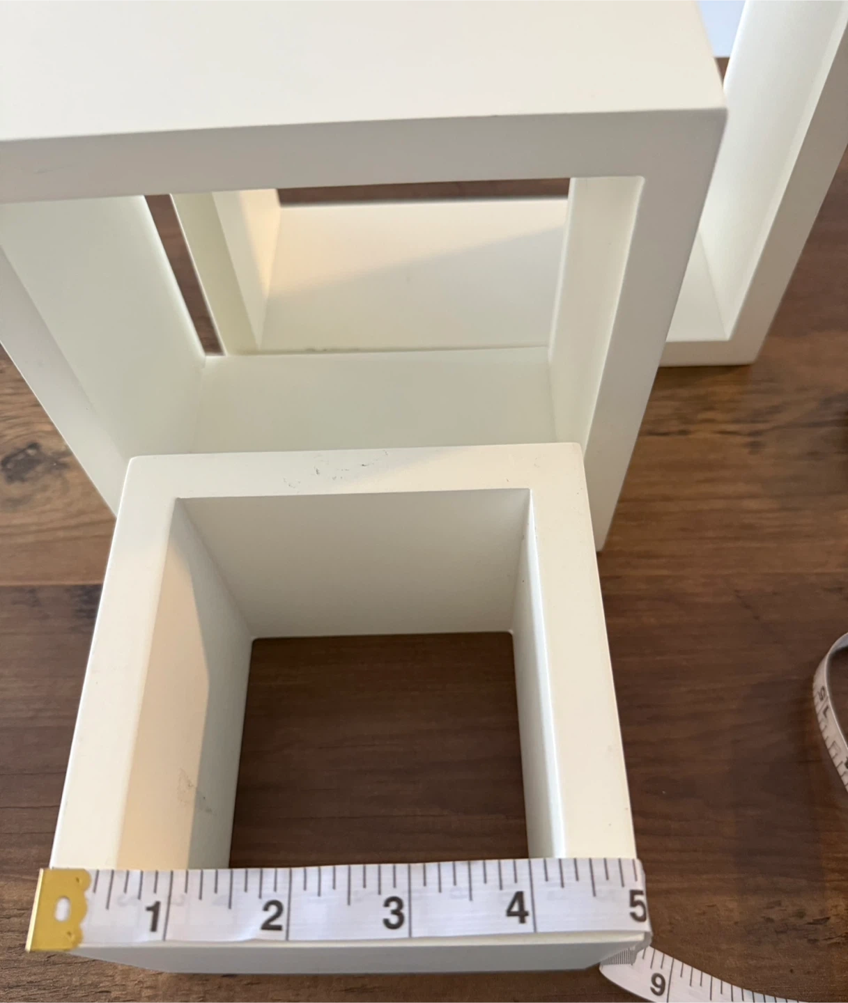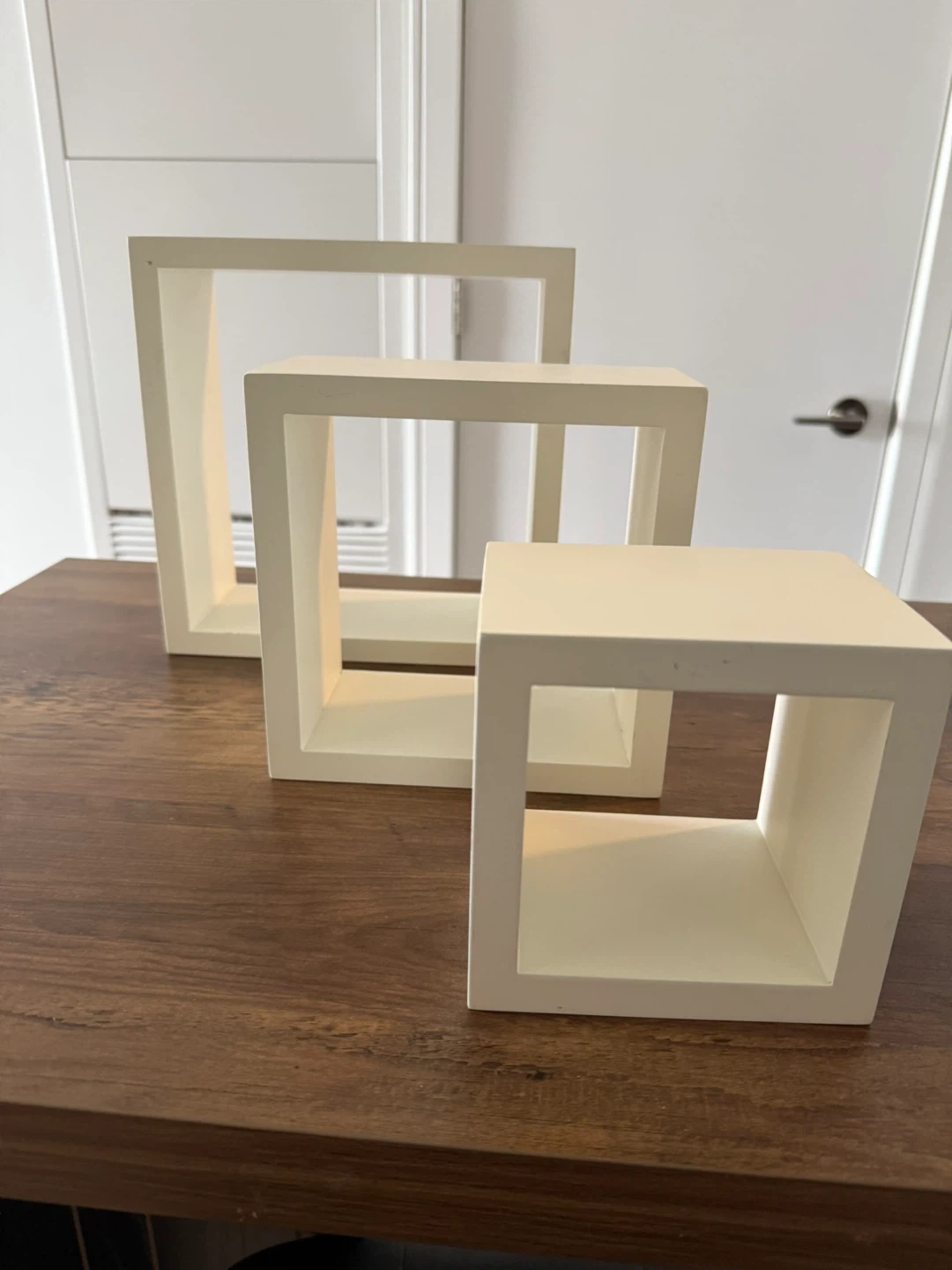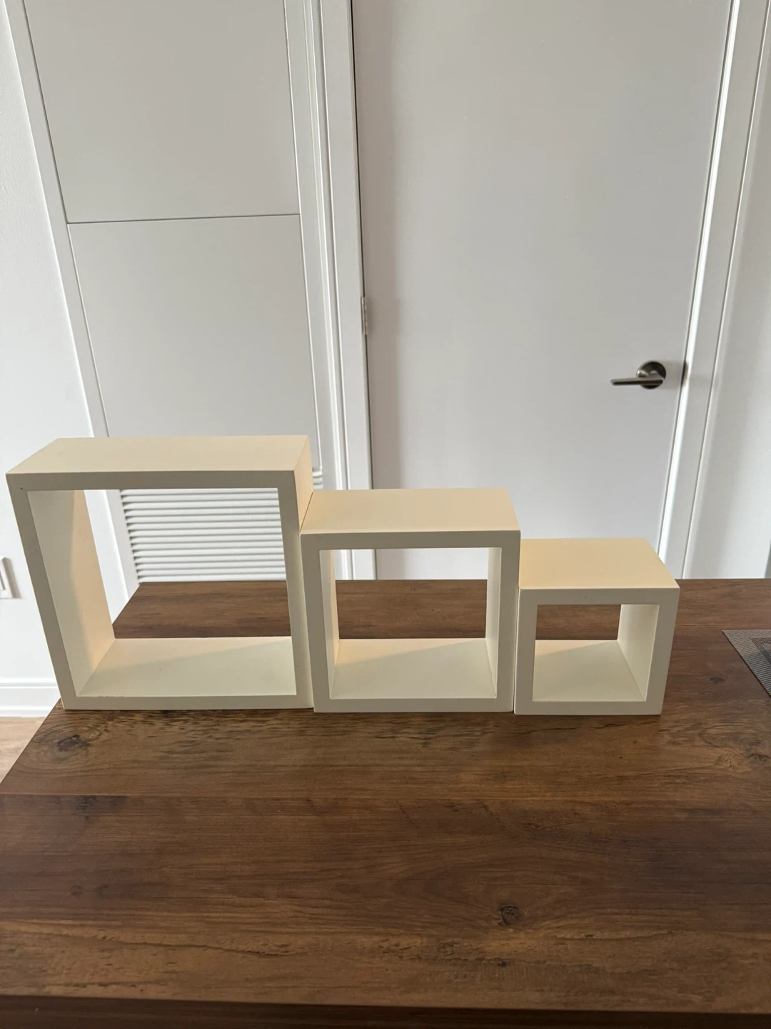 15Here's a set of three cube shelves! They're perfect for adding a modern touch to any room and displaying your favourite items. The shelves are in great condition and ready for a new home