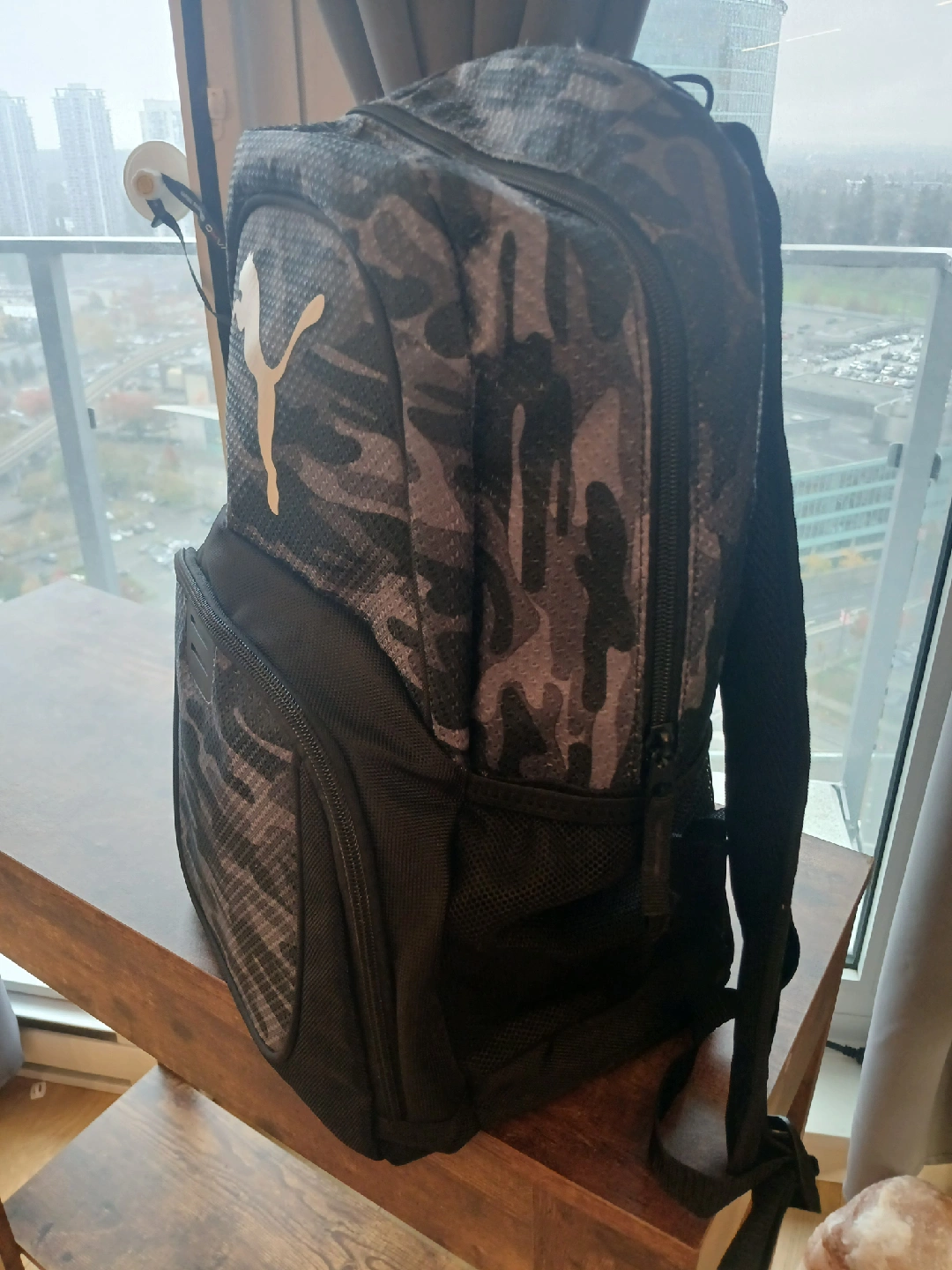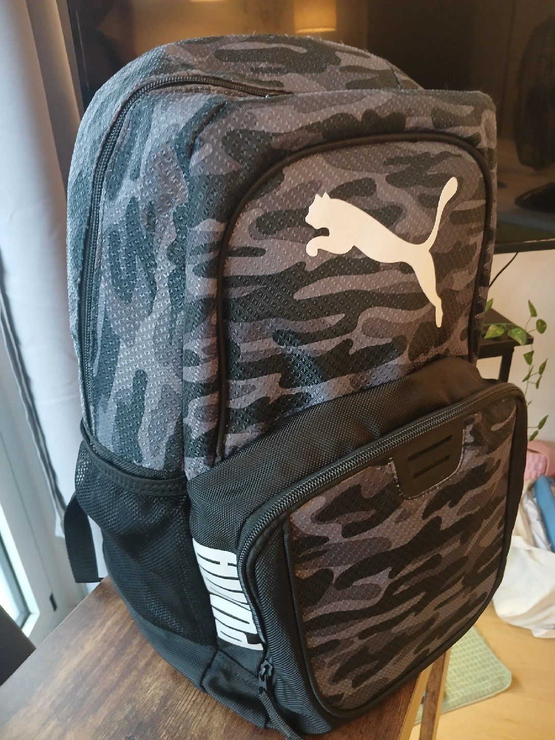 2οΈβ£ Puma Camo Backpack β Sporty, durable, and stylish with the signature Puma logo and mesh sides.