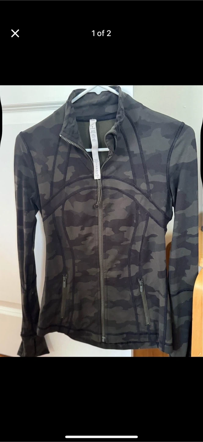 Selling a Lululemon Define Jacket in a cool camo pattern! It's in great shape and ready for a new home. Perfect for workouts or just hanging out. This jacket is a size 4 and the material is comfortable and stretchy