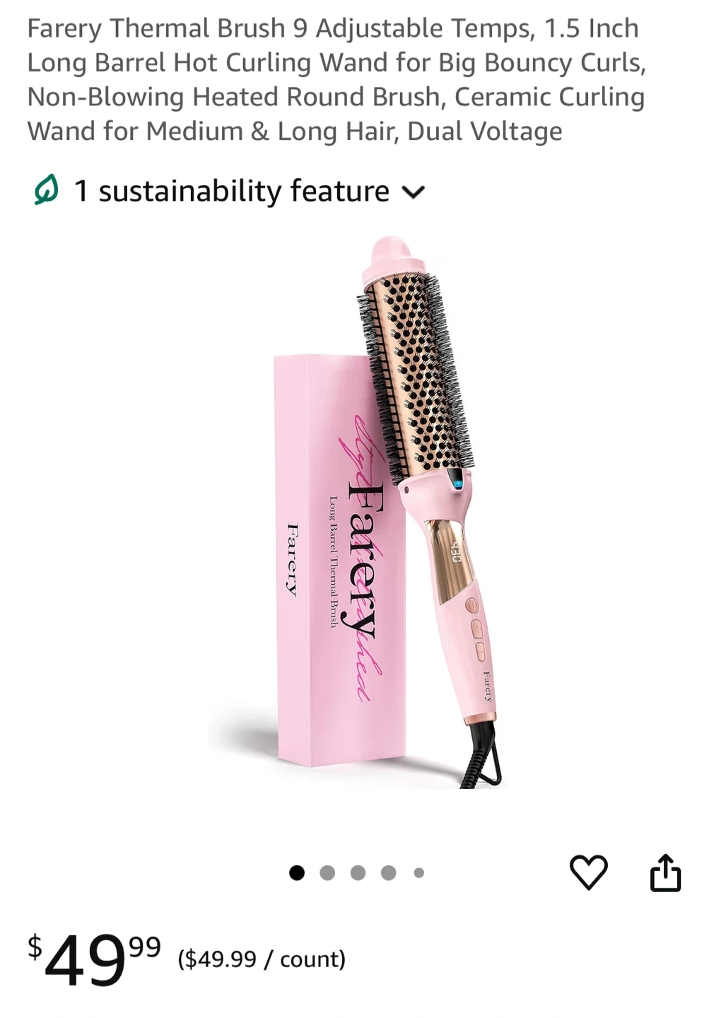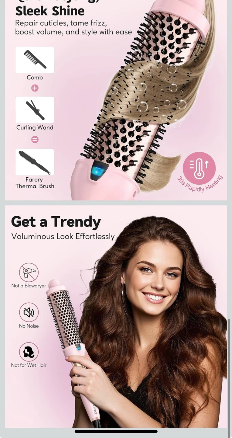 88I'm selling a Farery Thermal Brush. It's a 1.5 Inch Long Barrel Hot Curling Wand designed for big, bouncy curls. It also functions as a non-blowing heated round brush and ceramic curling wand for medium and long hair. It features dual voltage and 9 heat settings for all hair types. Originally bought for $49.99