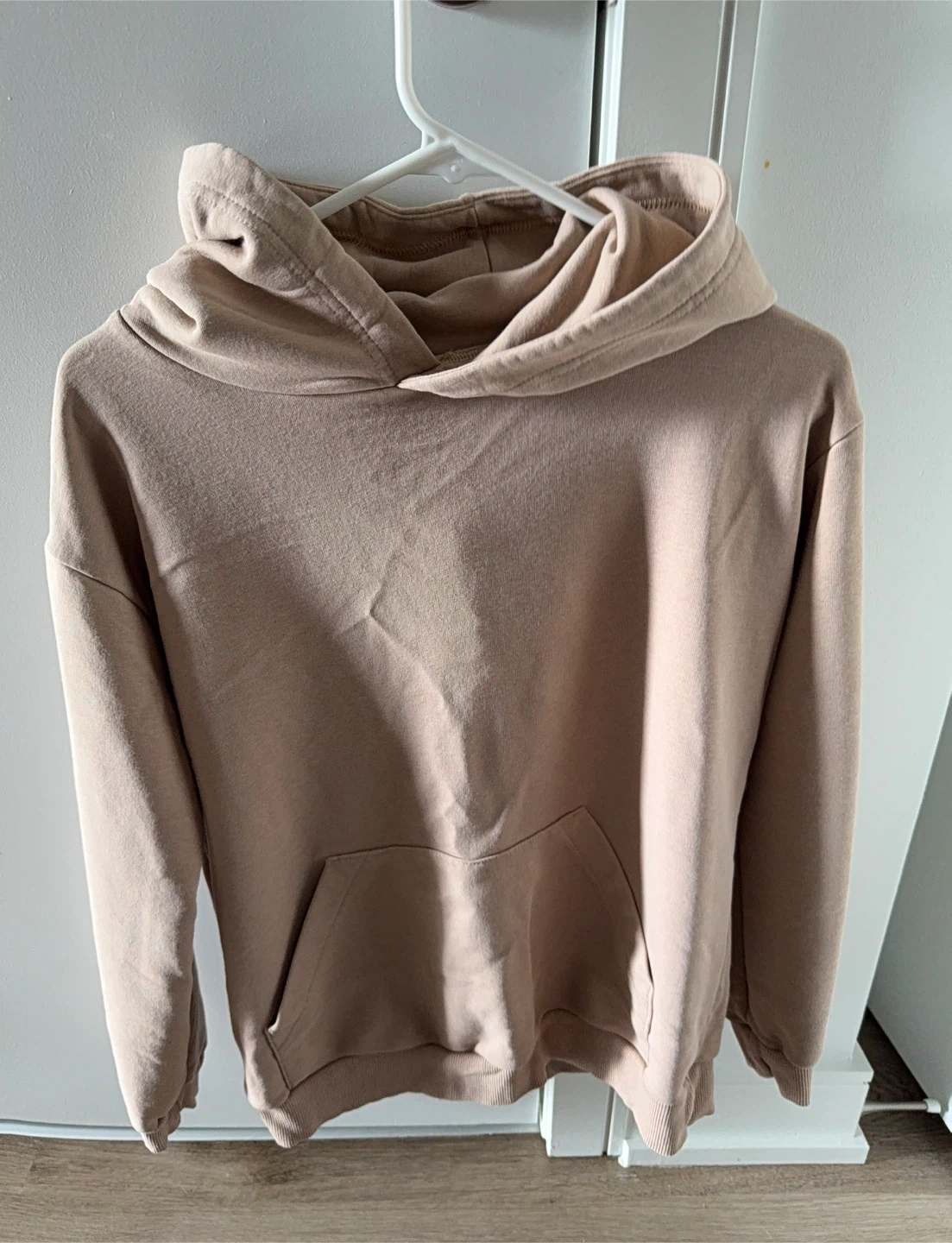 15Selling a comfy matching hoodie and sweatpants set in a lovely beige colour! They're in great condition and perfect for lounging around the house or running errands. The hoodie has a classic kangaroo pocket, and the sweatpants have a drawstring waist for a perfect fit. A cozy and stylish addition to your wardrobe! 100% cotton,