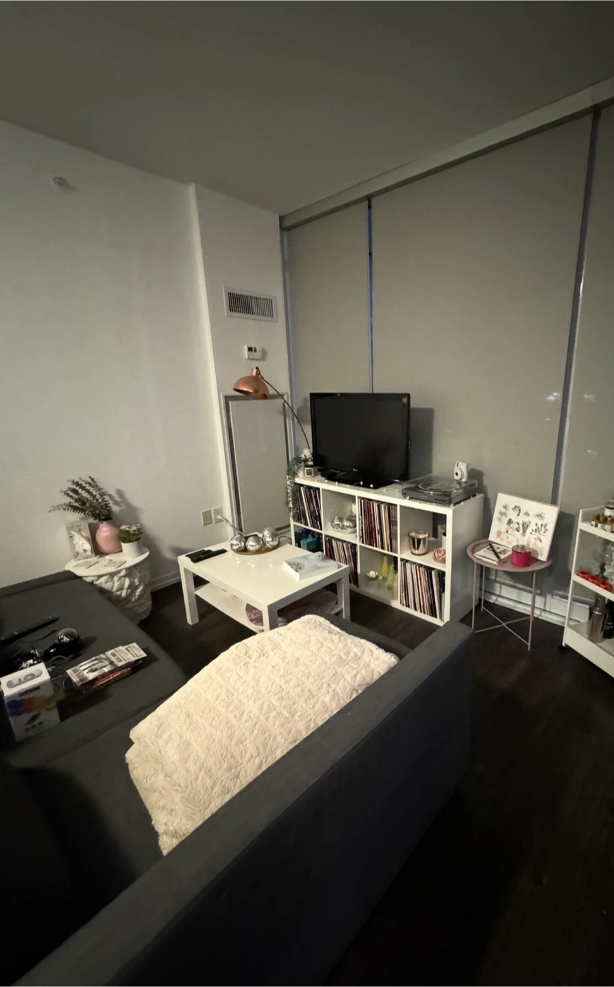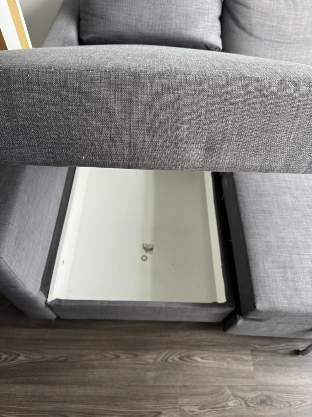 Selling a FRIHETEN sectional sofa-bed from IKEA in Skiftebo dark gray. It's in good shape and ready for a new home. Perfect for lounging or accommodating guests! It also has storage underneath. We moved and needed a bigger couch. We can take it apart but you will need to get it out of the unit. There are elevators