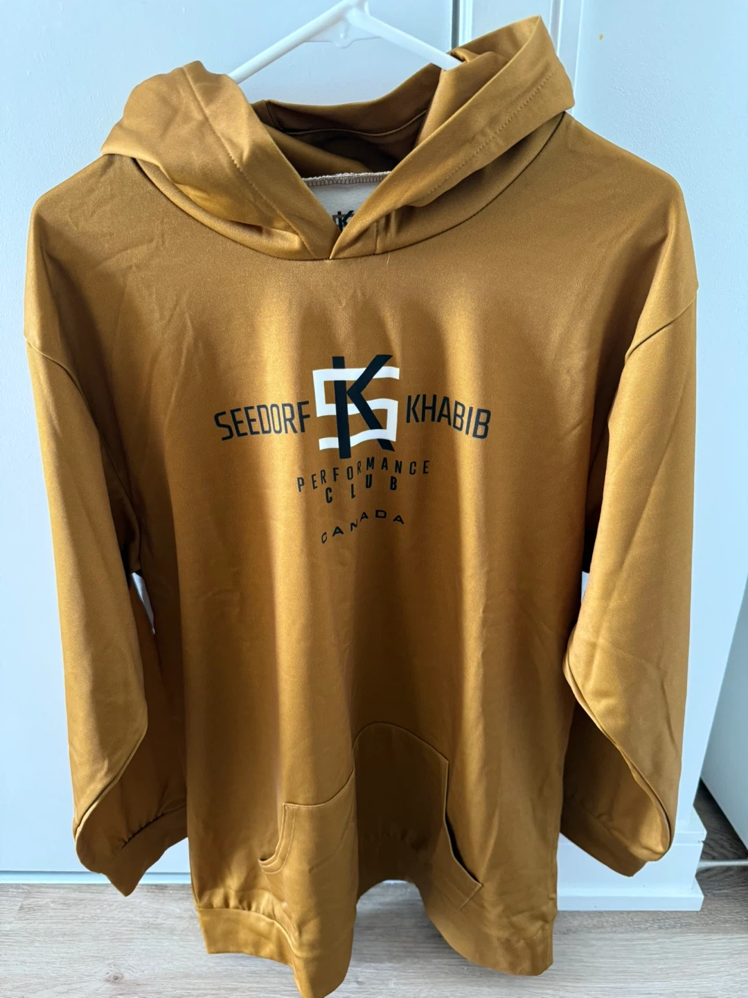 15Selling a Seedorf Khabib Performance Club hoodie in sizes L-3pcs and sizes XL-3pcs.The hoodie is a unique golden colour. It also features logos for Flight Sports Holding and TikTok DMCC on the sleeves