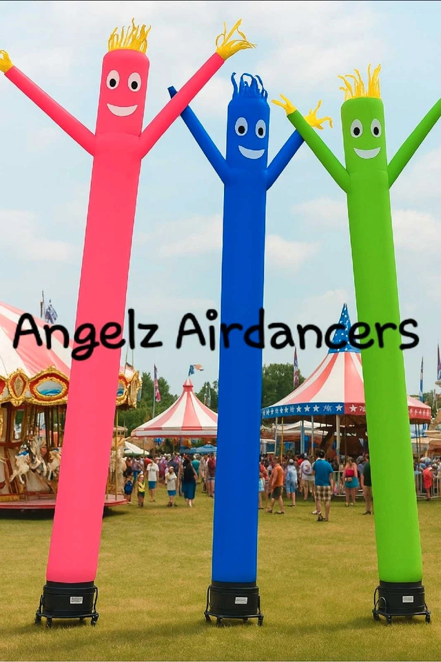 Add a touch of whimsy to any event with these vibrant, used sky dancers. They stand tall at 20ft and light up, or there's a smaller indoor 6ft dancer that says "HAPPY BIRTHDAY." They command attention with bright colours and dynamic movement, perfect for drawing crowds and creating a fun atmosphere.