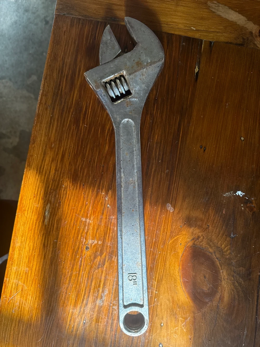 Selling a used 18-inch adjustable wrench. It's drop forged for extra durability. It shows some signs of wear but is still fully functional and ready to use for your projects