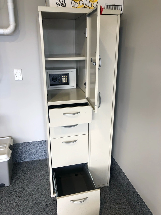 91This tall metal cabinet with drawers and shelves is a versatile storage solution for any space! It's in used condition, ready to organize your items efficiently. The unit features both drawers and shelves, perfect for a variety of storage needs. * Multiple drawers for concealed storage * Adjustable shelves for flexible organization Looking to declutter? This cabinet is your answer! If the ad is up, the cabinet is available – ready to find a new home and help you get organized.