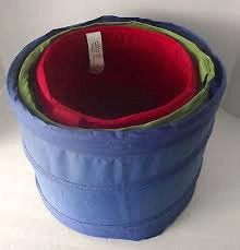 I'm selling a set of three nesting fabric bins from IKEA in blue, green, and red! These bins are perfect for organizing toys, clothes, or other household items and can be nested for easy storage when not in use. They are in good condition and ready for a new home.