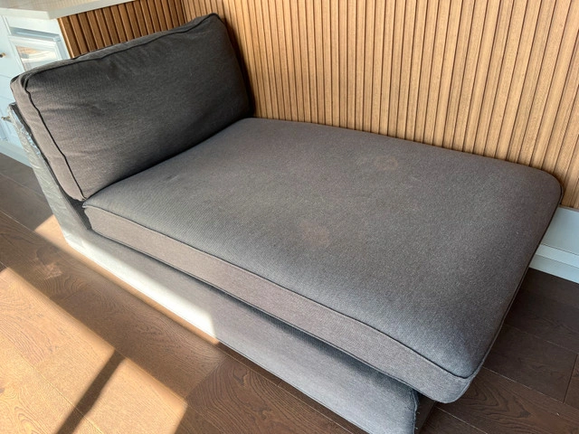 91Selling a used IKEA Söderhamn chaise lounge in grey, perfect for adding a cozy spot to your living space. This comfortable lounge chair features a deep seat and a supportive backrest, making it ideal for relaxing or reading. Here are the approximate dimensions: * Width: 90 cm (35 3/8 inches) * Depth: 163 cm (64 1/8 inches) * Height: 83 cm (52 3/8 inches) This chaise lounge is in good condition and has been well-maintained. It's a fantastic addition to any home, providing both style and comfort. If the ad is up, the item is available!