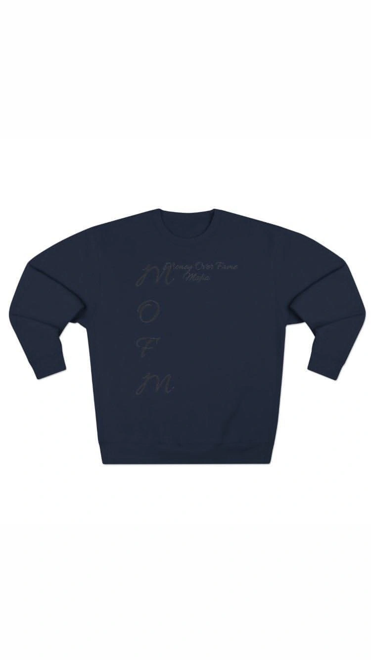 20Selling a navy blue crewneck sweater with "MOFM" (Money Over Fame Make) printed on the front. It looks to be in great condition!