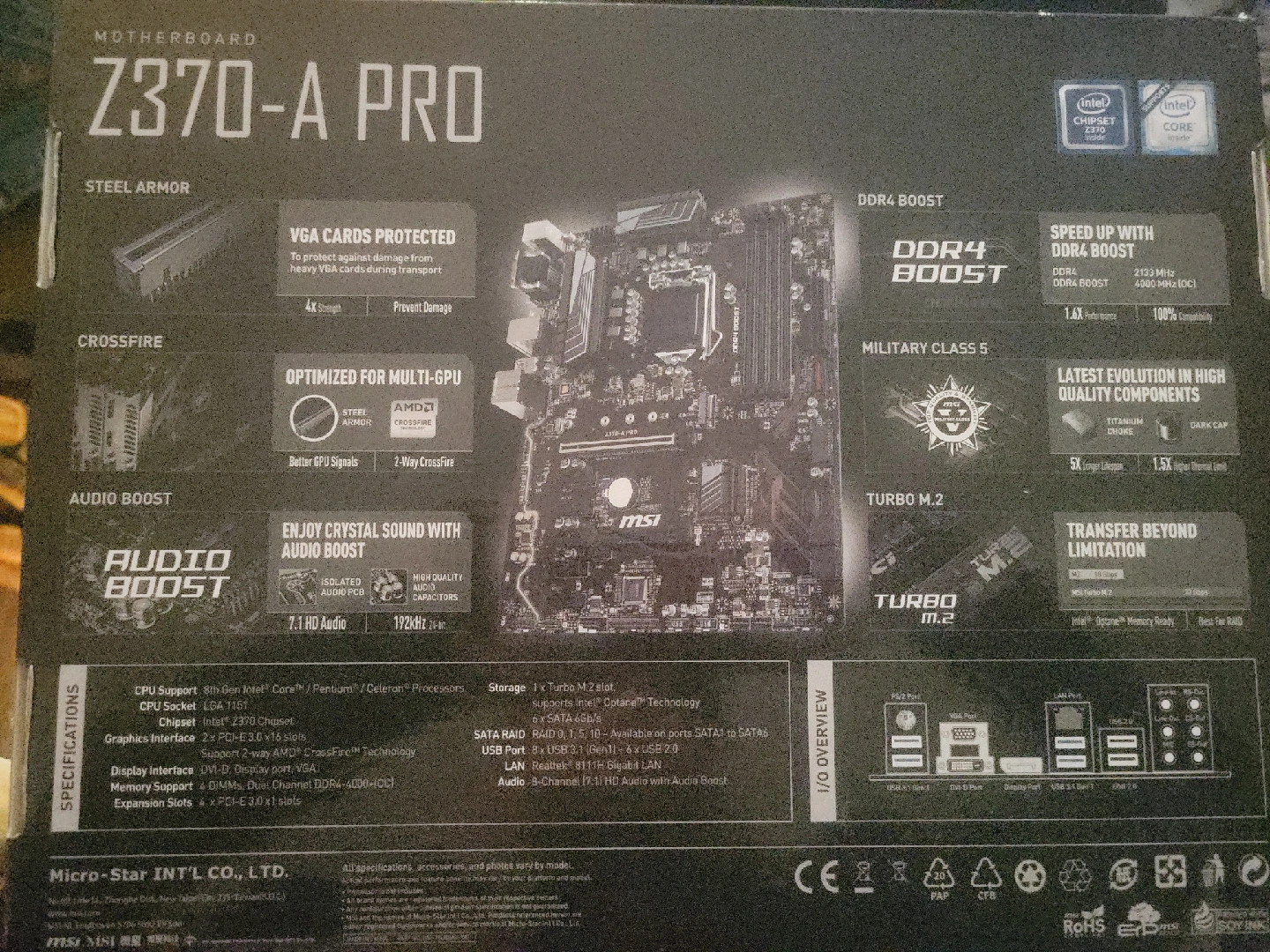 Selling a used MSI Z370-A PRO motherboard. It comes with the original box, a quick installation guide, and a driver DVD. Great for upgrading your computer!