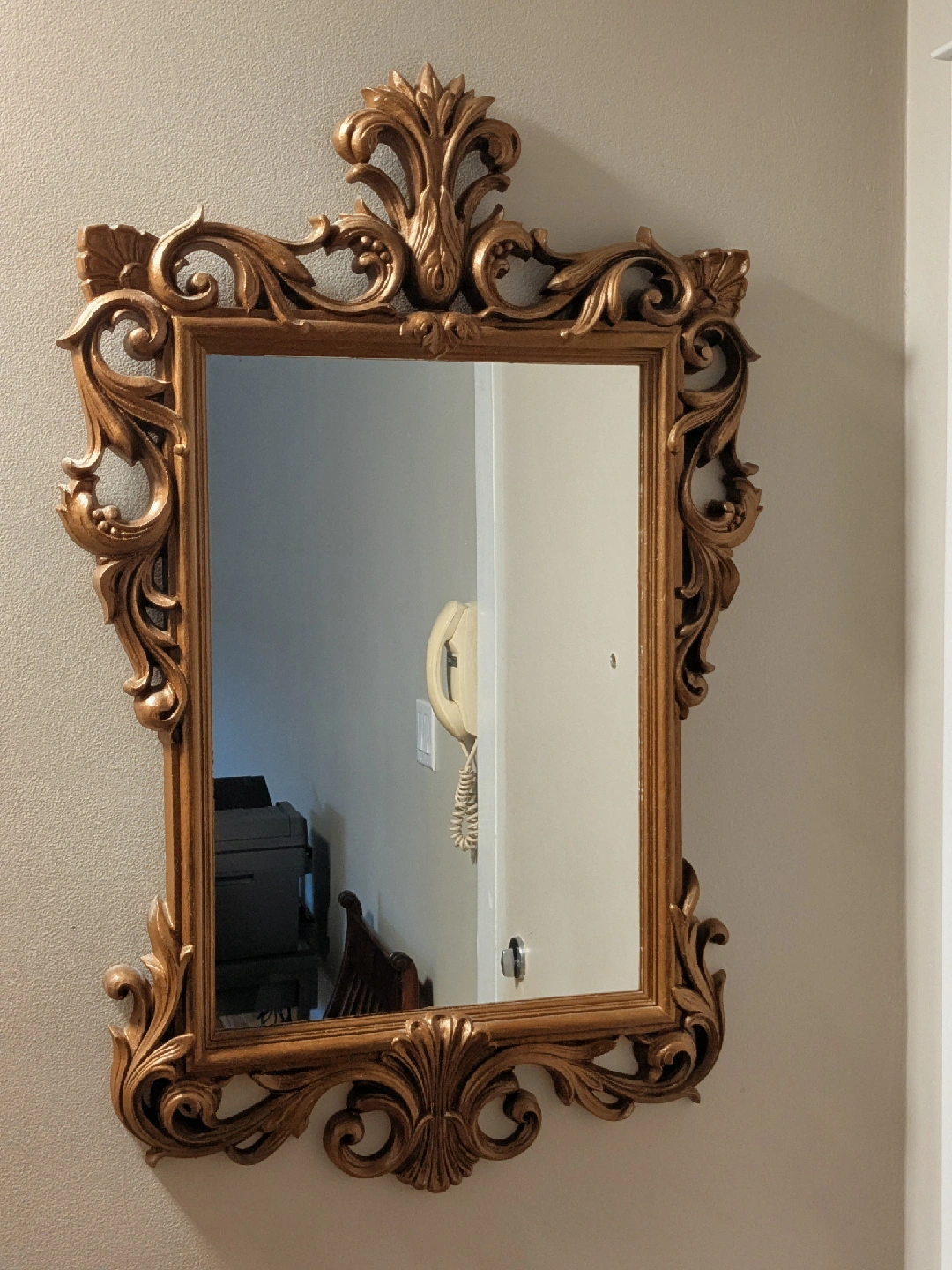 158Selling a lovely ornate framed wall mirror of composite plastic believe it or not! t's in great condition and would add a touch of elegance to any room!