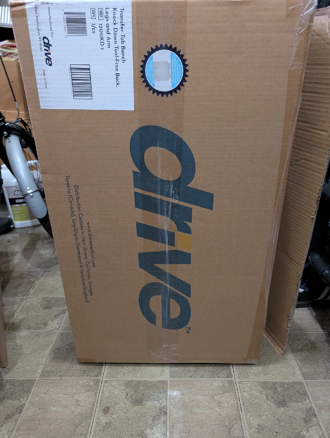 Selling a brand new Drive Transfer Tub Tub Bench in its original box! It's a knock-down model, making it easy to assemble without tools. The bench provides a safe and comfortable bathing experience. It weighs 13.6 lbs and supports up to 400 lbs. Dimensions are 26" L x 18.5" W, and the height is adjustable from 17.5" to 22.5"