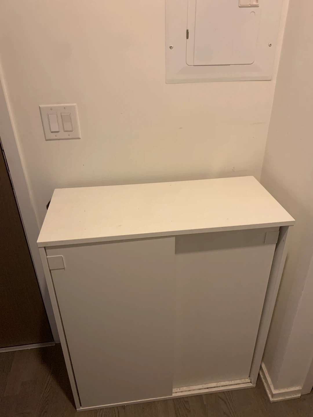 Selling an IKEA Mackapär shoe/storage cabinet in white. It's in great shape with a few signs of wear and tear.