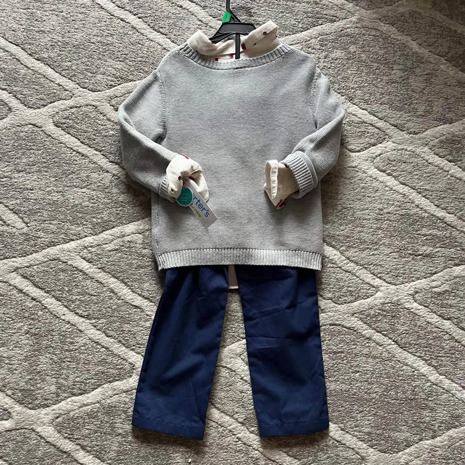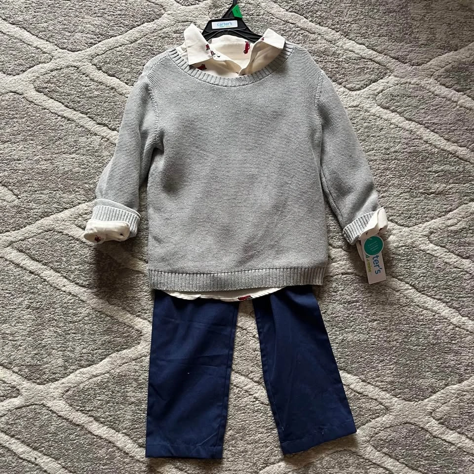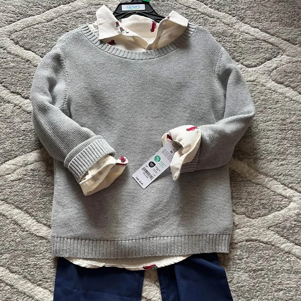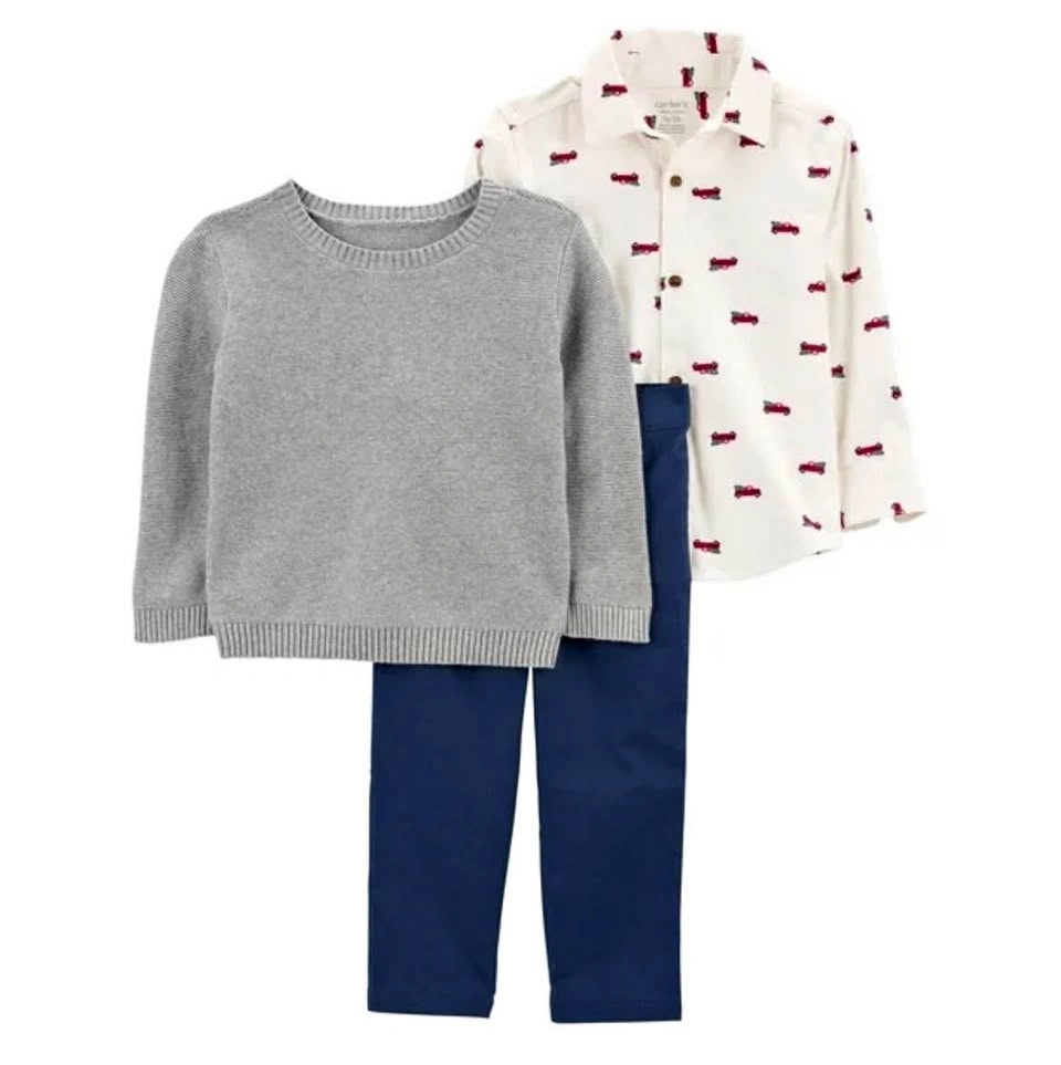 BNWT Carter's Child of Mine 5T Boy Red Truck Set - Knitted sweater, shirt and pants.