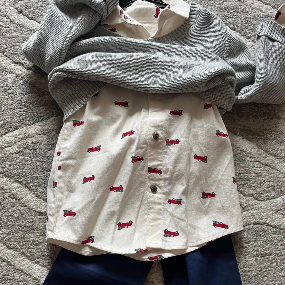 BNWT Carter's Child of Mine 5T Boy Red Truck Set - Knitted sweater, shirt and pants.