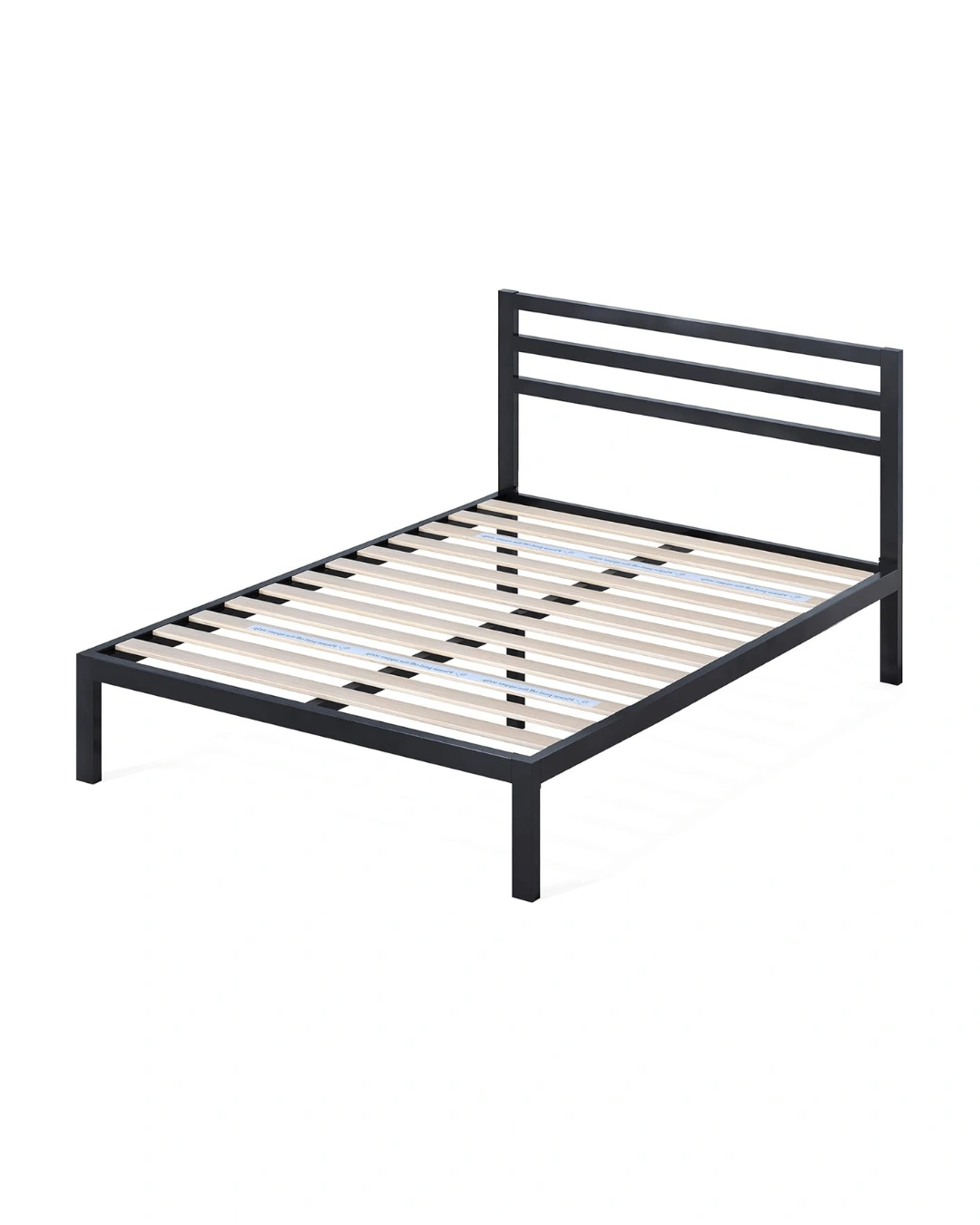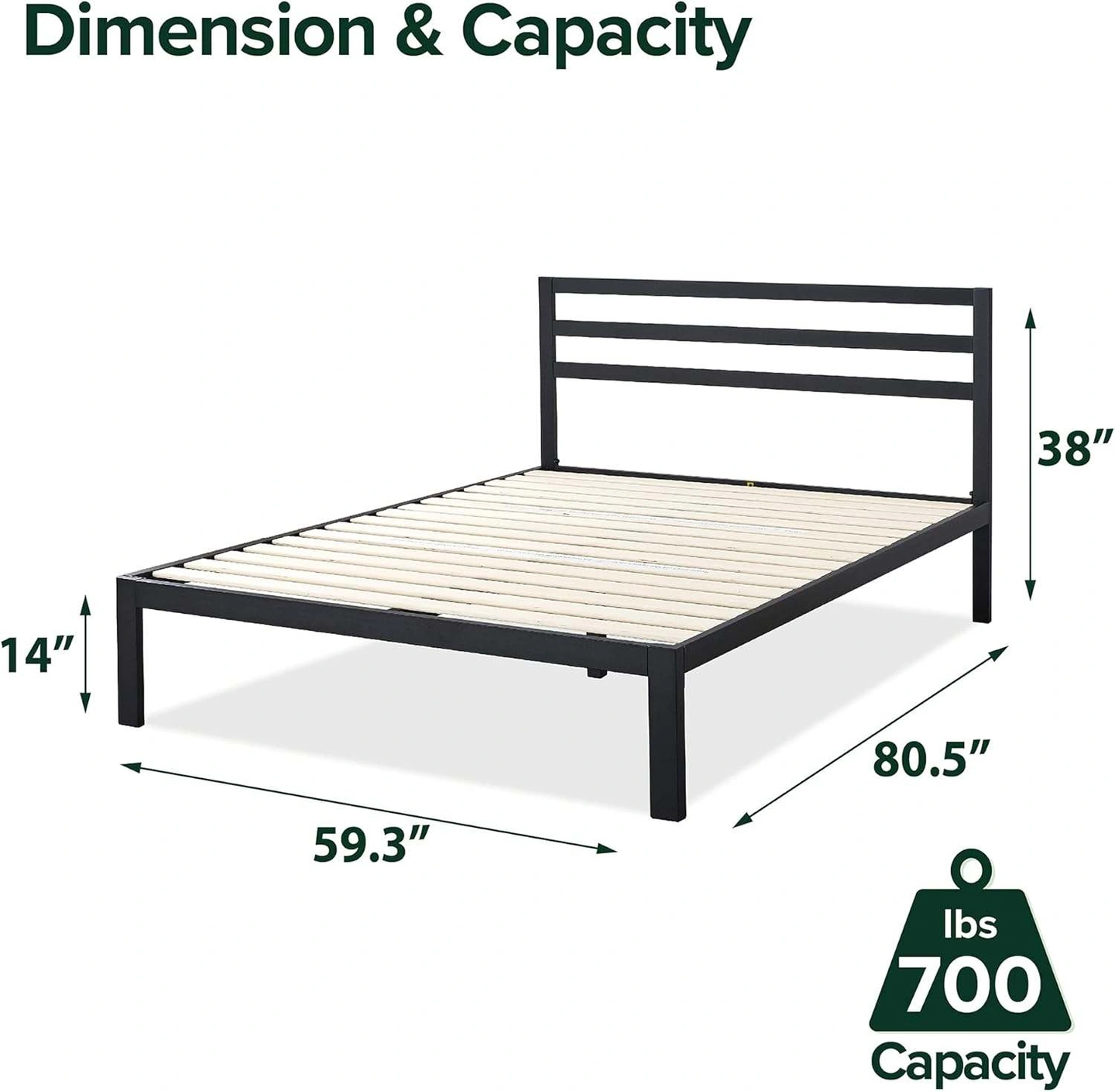 Selling my queen-sized metal bed frame with headboard, perfectly assembled and gently used, like-new condition. This 5-inch metal platform bed frame features wood slat support, requires no box spring, offers spacious under-bed storage, is made entirely of steel for maximum durability, and can support up to 700 lbs. Comes with the original assembly manual and spare bolts from the original package for easy reassembly.