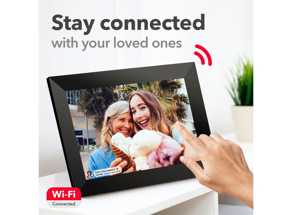 Wi-Fi Connectivity: Allows family and friends to send photos directly from their smartphones using the free Frameo app.