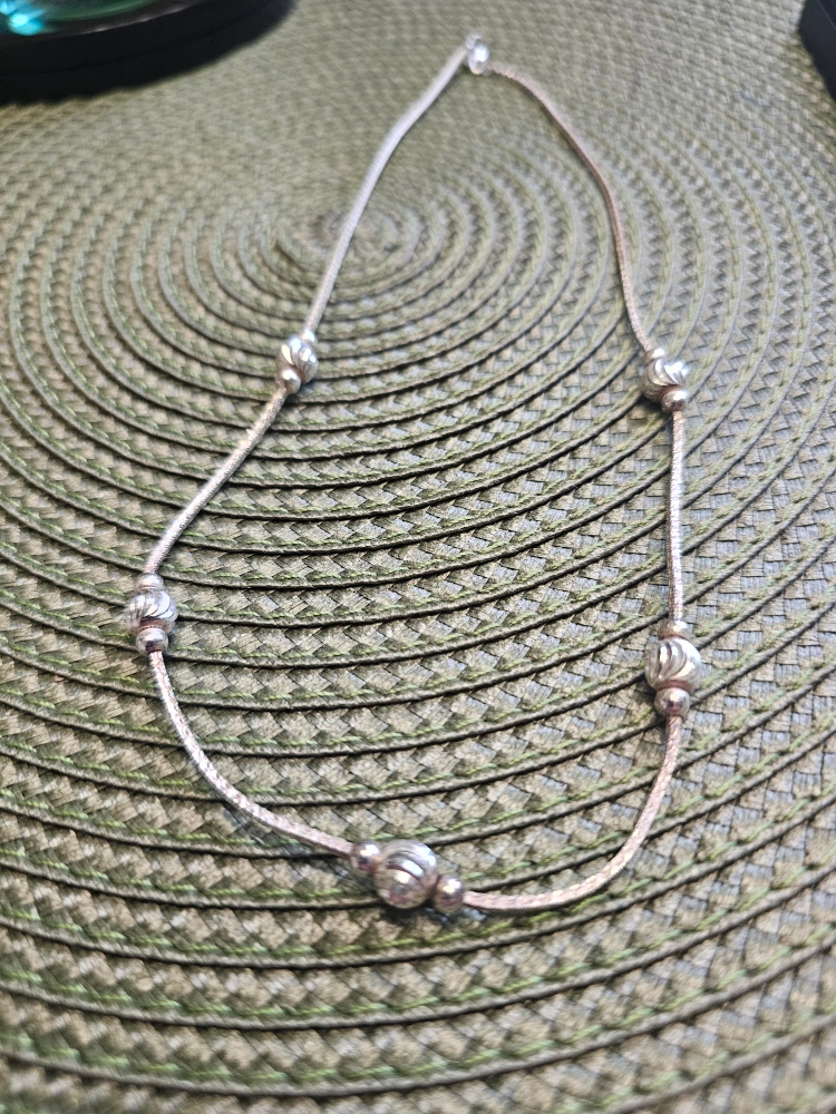 1000+A simple silver necklace stamped 925 italy with decorative beads. Perfect for adding a touch of sparkle to any outfit!