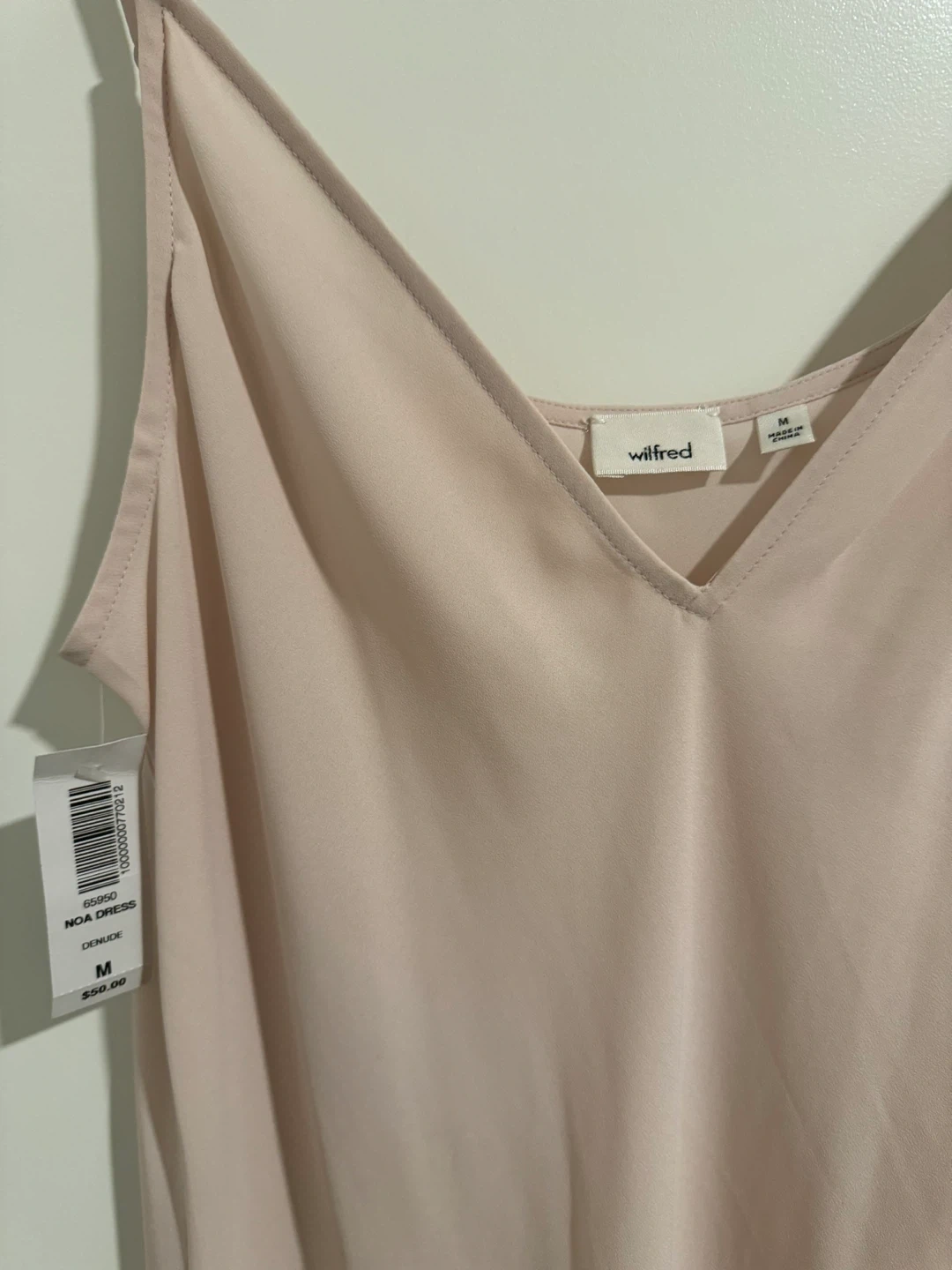 Selling a Wilfred Noa Dress in a size medium! It's a beautiful, simple dress that's perfect for layering or wearing on its own. The colour is a lovely, neutral nude. Originally $58