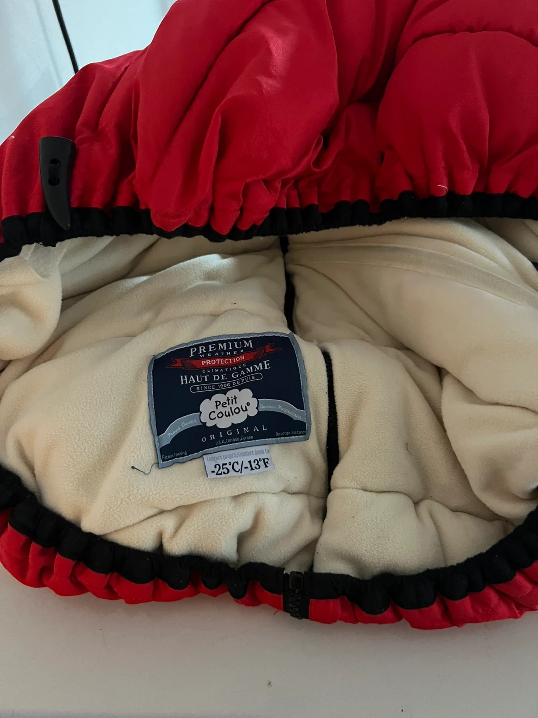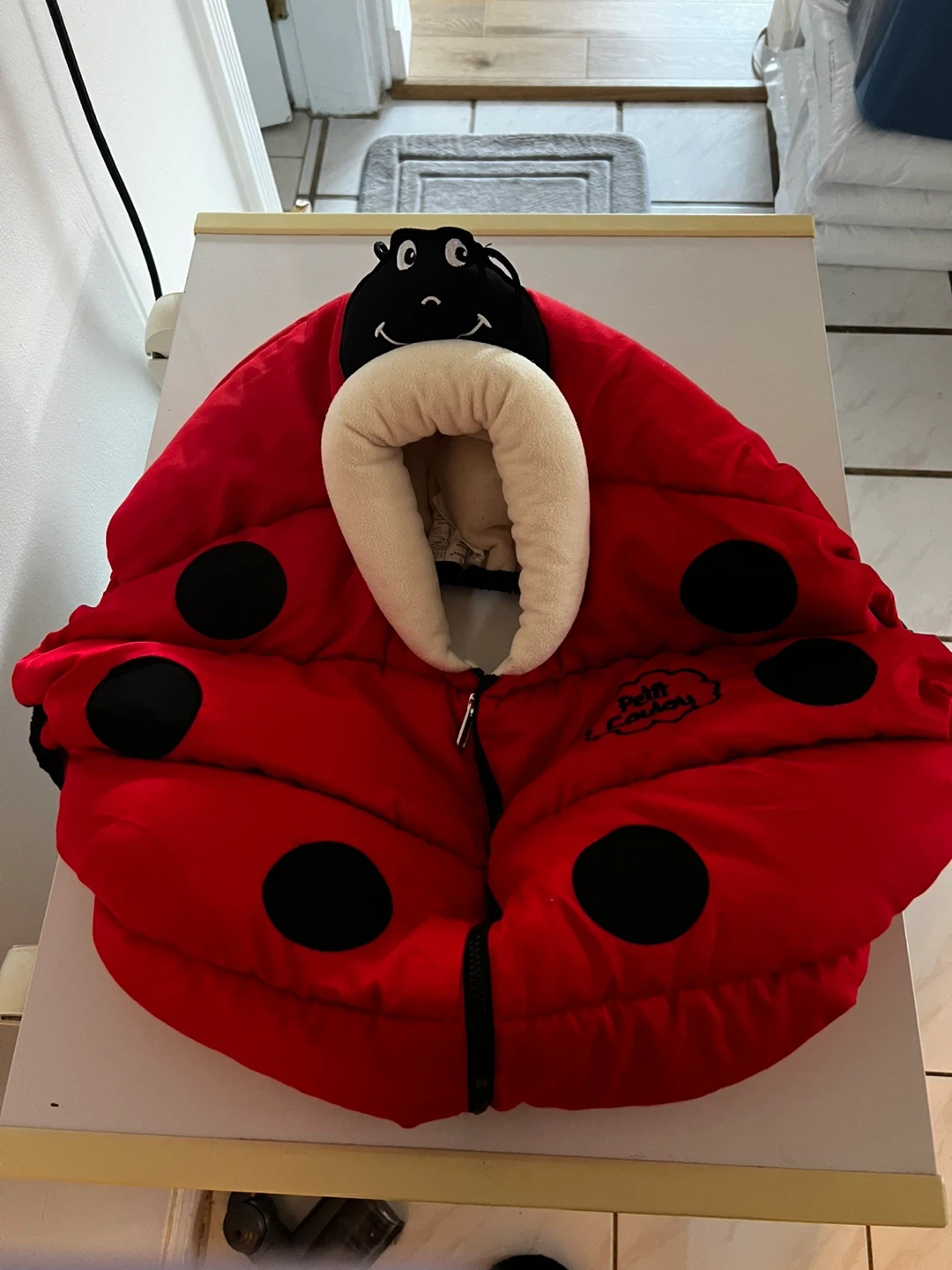 Keep your little one cozy with this adorable Petit Coulou baby bunting bag! It features a cute ladybug design in red and black. Designed to keep baby warm even in -25°C/-13°F weather. Perfect for stroller rides or outdoor adventures!