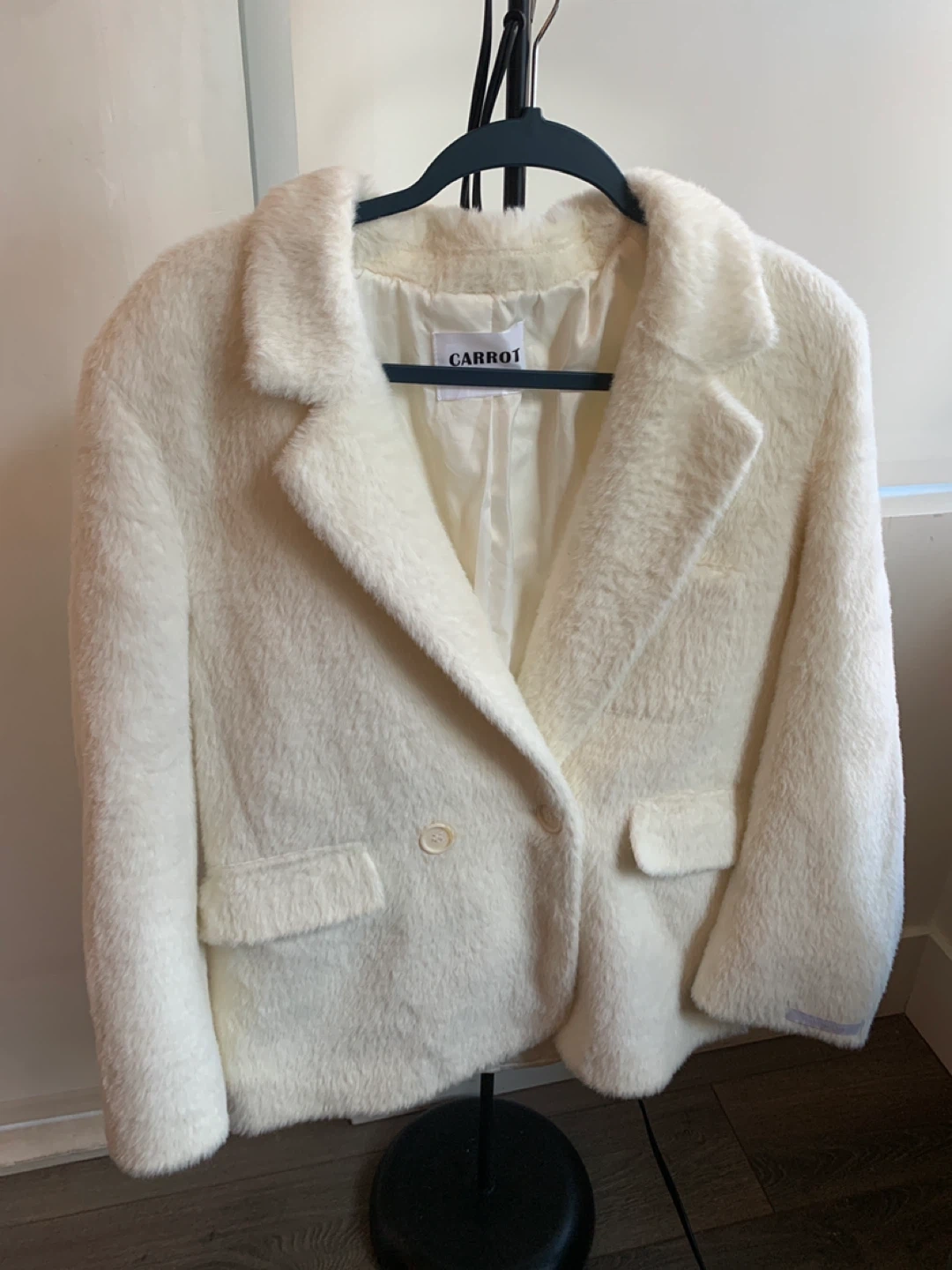 Looking to sell this cream-coloured double-button jacket from Carrot! It's in great condition and perfect for adding a cozy touch to any outfitted