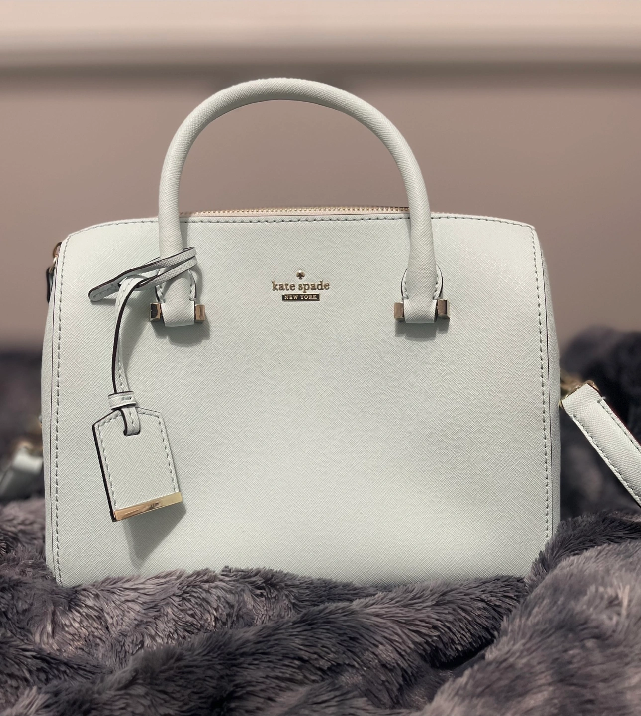 Selling a cute Kate Spade satchel bag in the colour Misty Mint! It has never been used and is in excellent condition and perfect for everyday use. The bag features a top handle and a detachable shoulder strap for versatile carrying options.