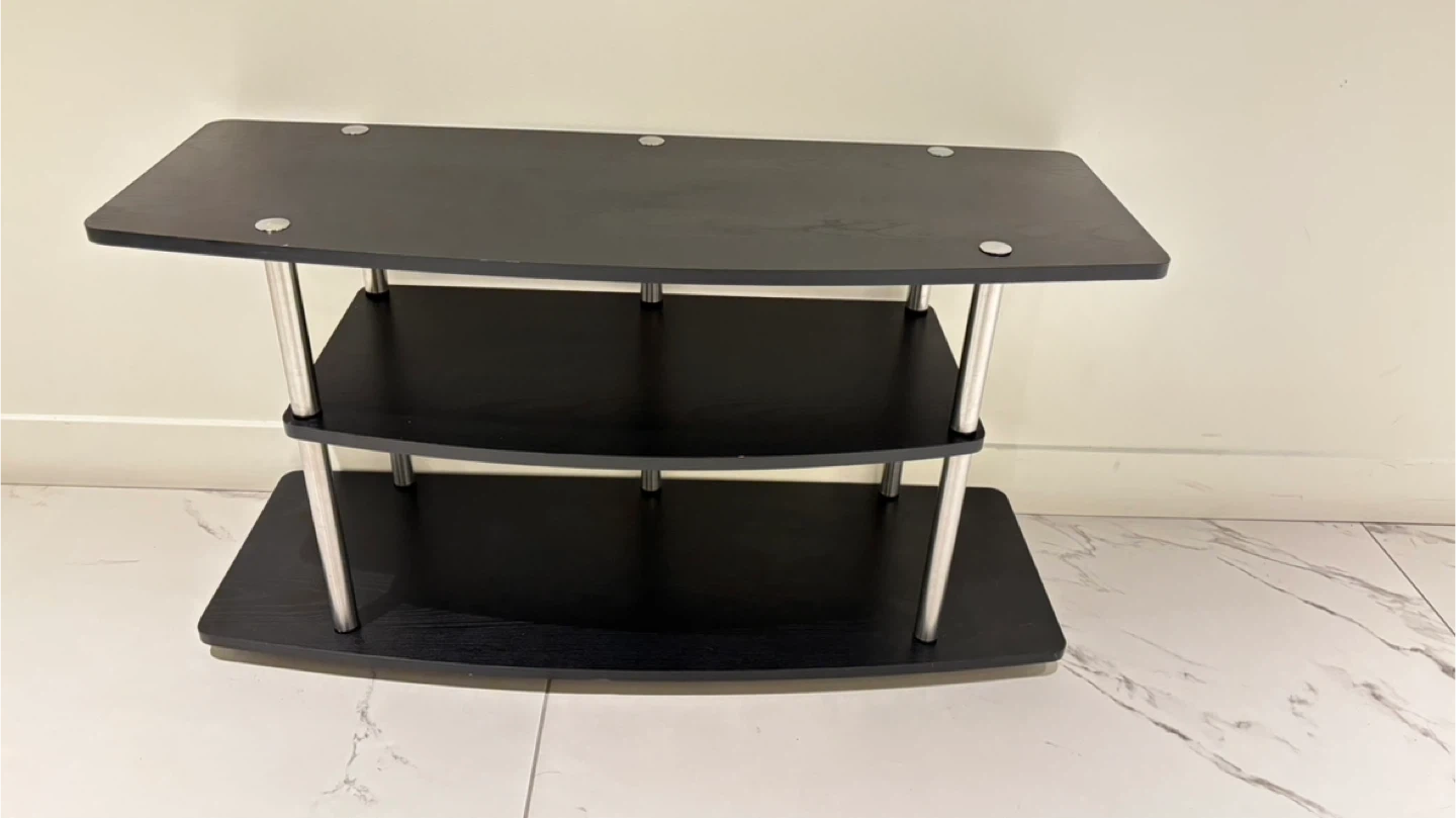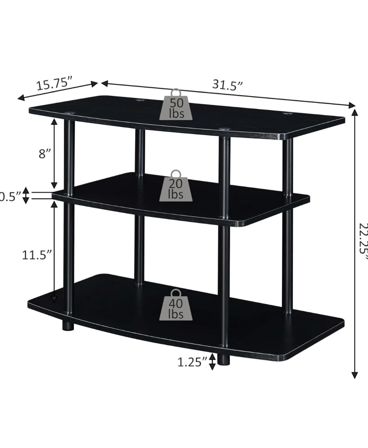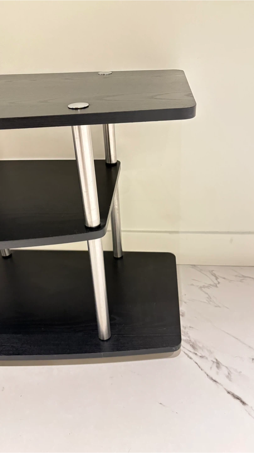 563Looking to sell my black 3-tier TV stand! It’s in great shape and perfect for organizing your entertainment setup. The dimensions are approximately 31.5" wide, 15.75" deep, and 22.25" tall. Each shelf can hold a good amount of weight, with the top shelf supporting up to 50 lbs, the middle shelf 20 lbs, and the bottom shelf 40 lbs