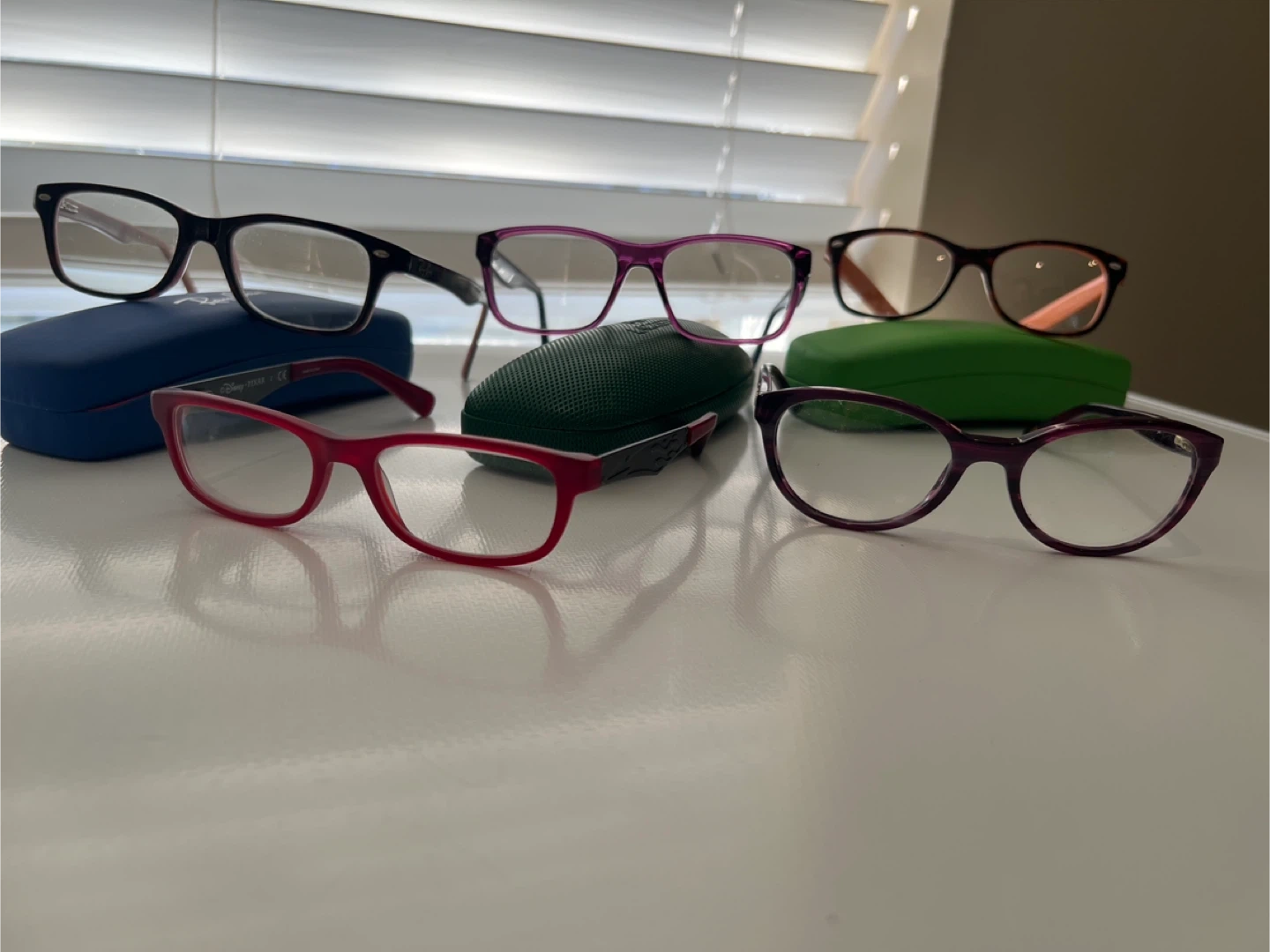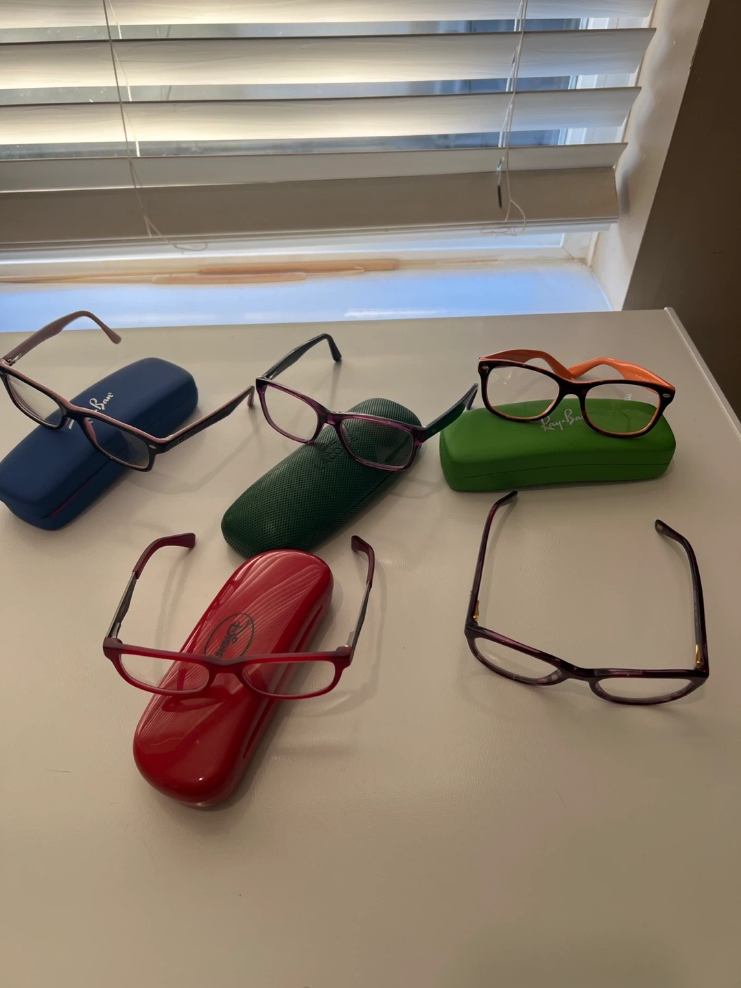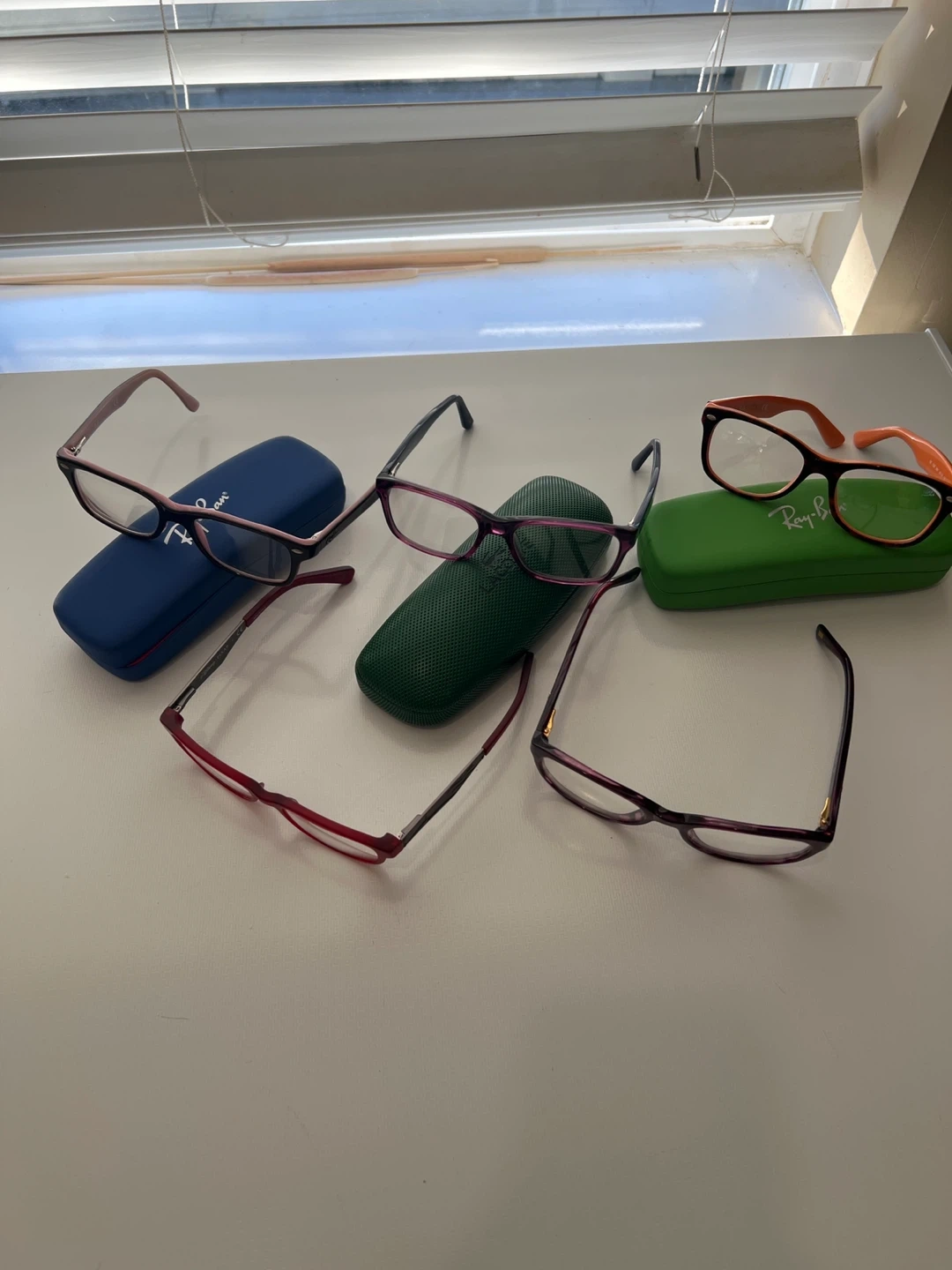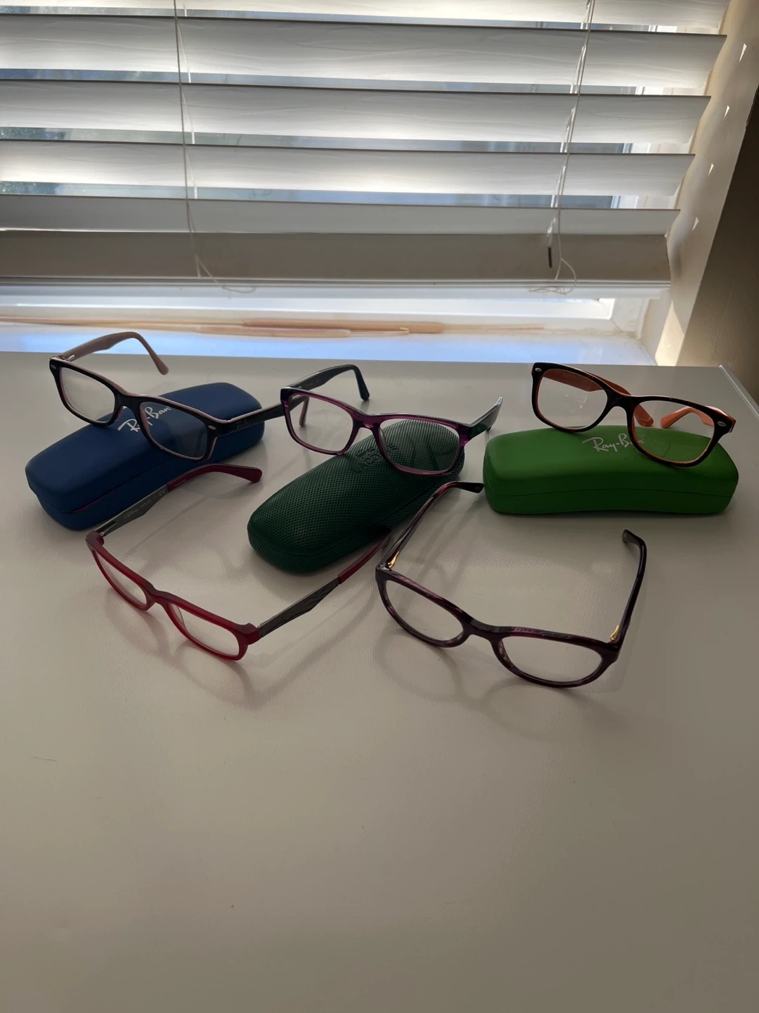 36Selling a lot of five eyeglass frames. They are in good condition and come with their cases. Two are Ray-Ban 1 Lacoste 1 Polo 1 Disney They were my daughter’s but she has outgrown them. I would say they would fit from a 6 yr old to a 10 yr old. $25 each frame OBO