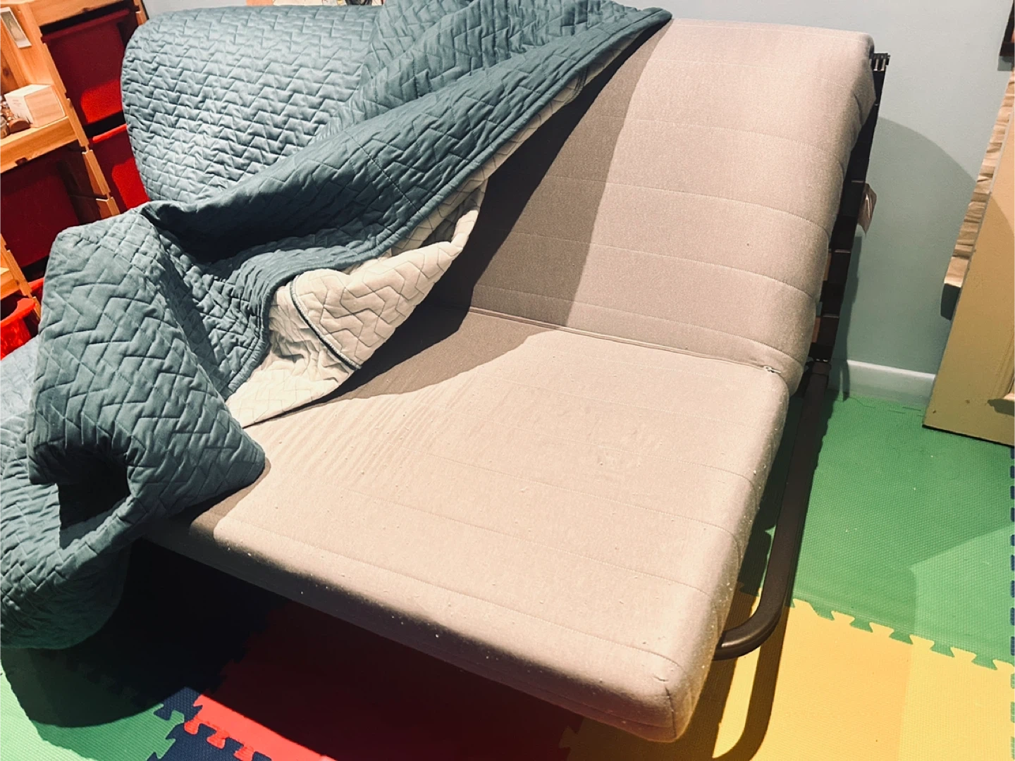 Selling an IKEA Lycksele Lovas sofabed. It comes with a blue cover (first picture is off Ikea website. They don’t sell the blue cover anymore). The original listing shows the cover in Ransta natural and the price at $449. The sofa bed does not stay locked in place, but it’s great to use as a couch. Comes with washable cover and mattress. See last image for size. Comes from a pet free and smoke free home. Need gone soon!