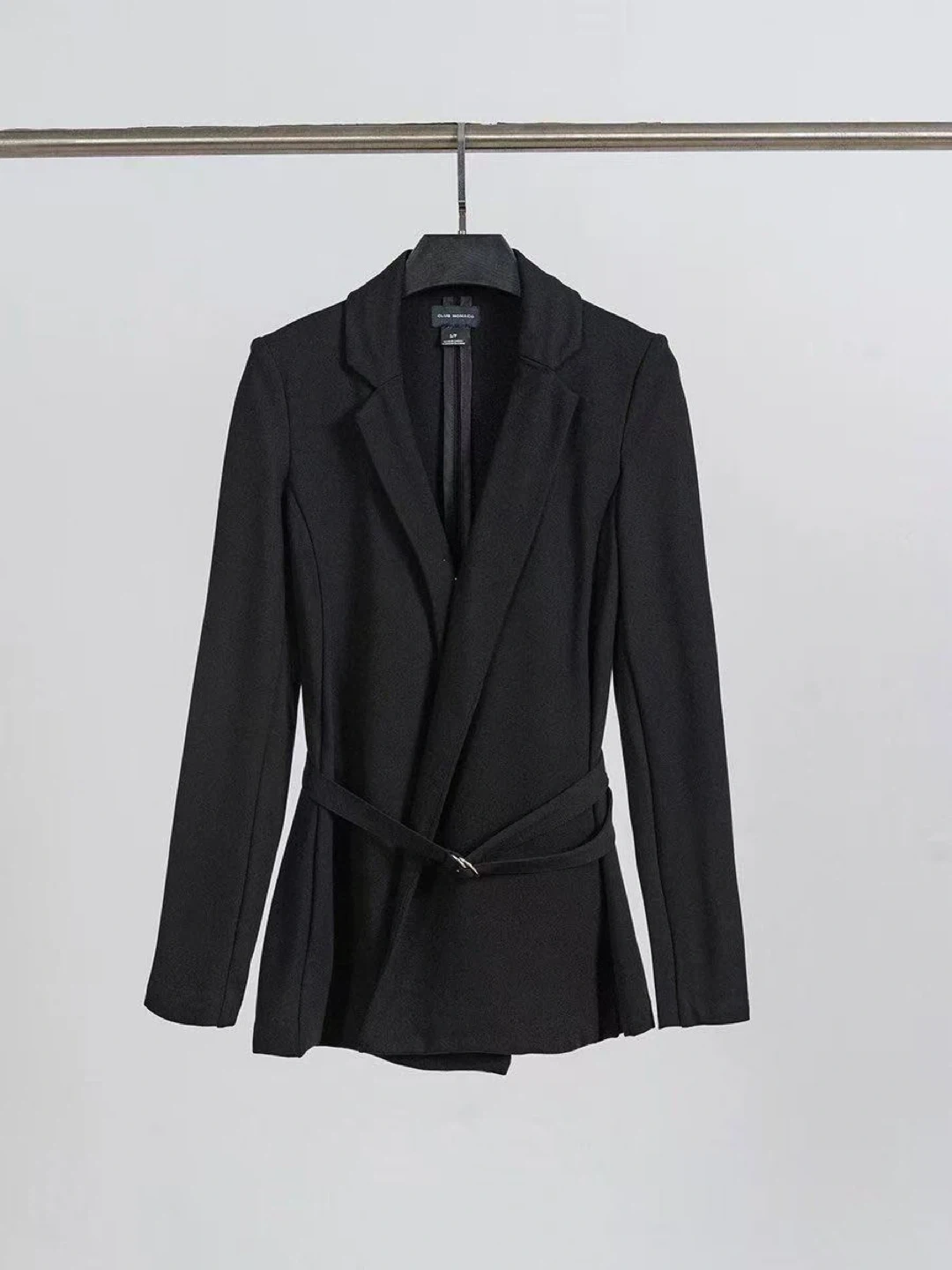 Here's a stylish black belted blazer from Club Monaco in size 6! It's a great addition to any wardrobe