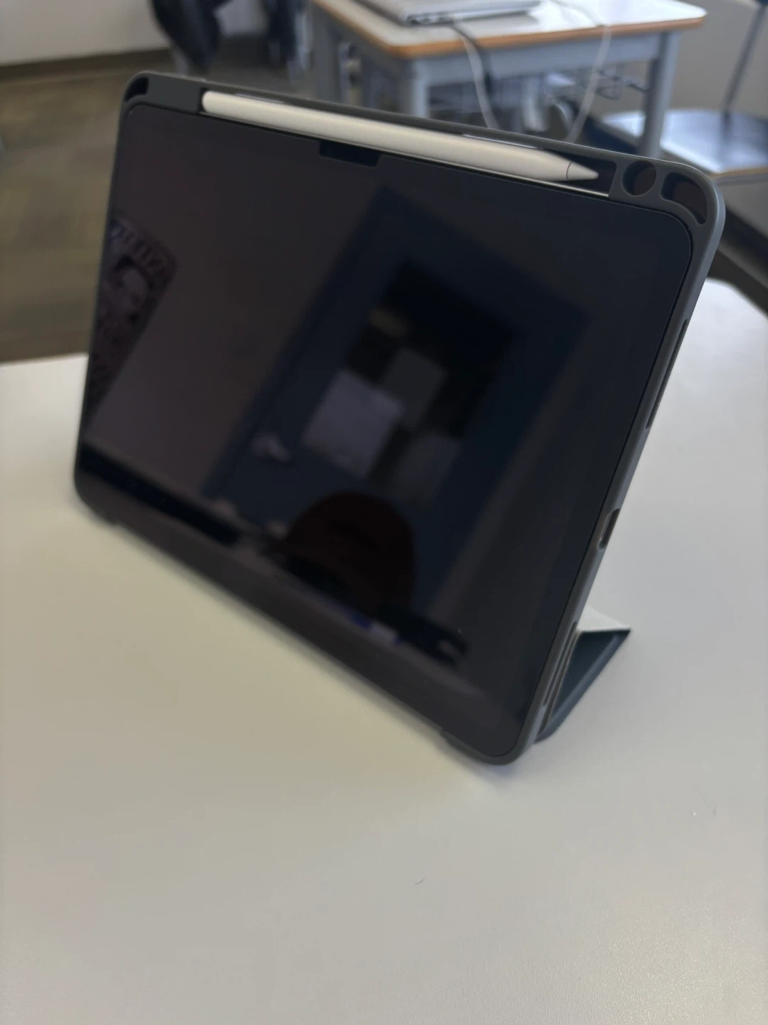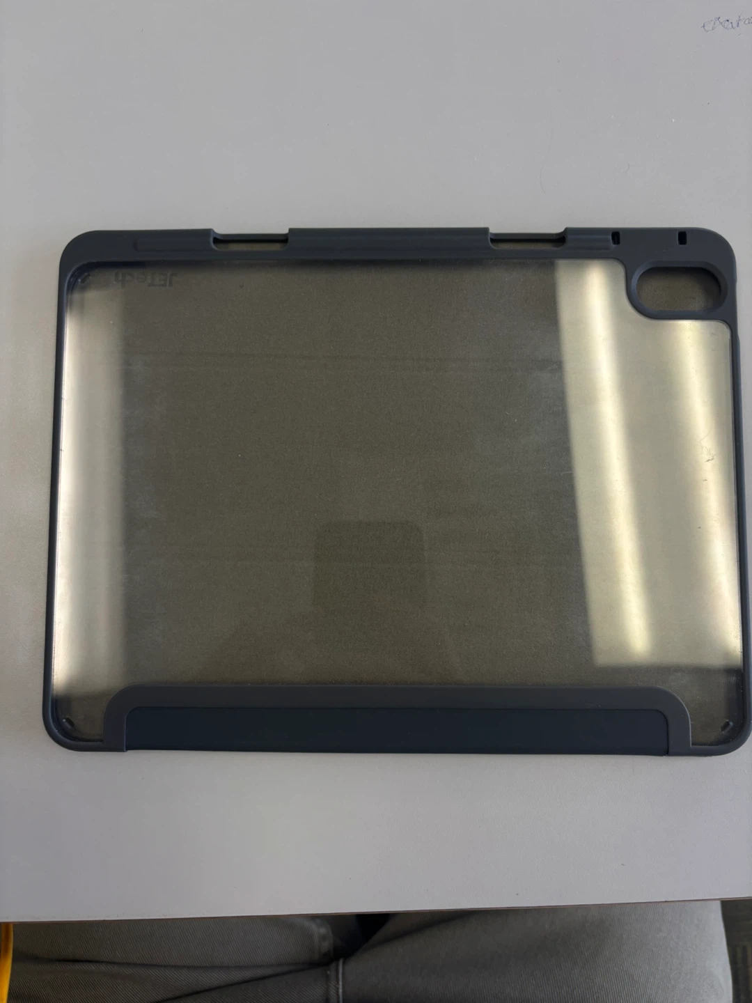 Selling a JETech iPad case in great condition! It comes with a pencil holder and is a sleek grey colour. It's perfect for protecting your iPad while keeping your Apple Pencil handy