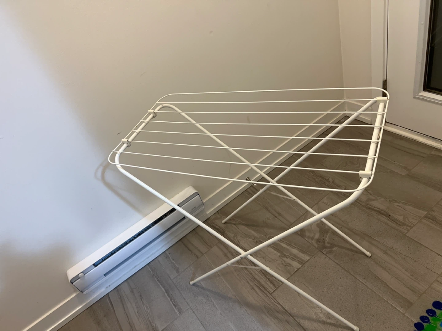 106Selling a clothes drying rack in mint condition! It's white and perfect for air-drying your clothes indoors. Great for saving energy and space!