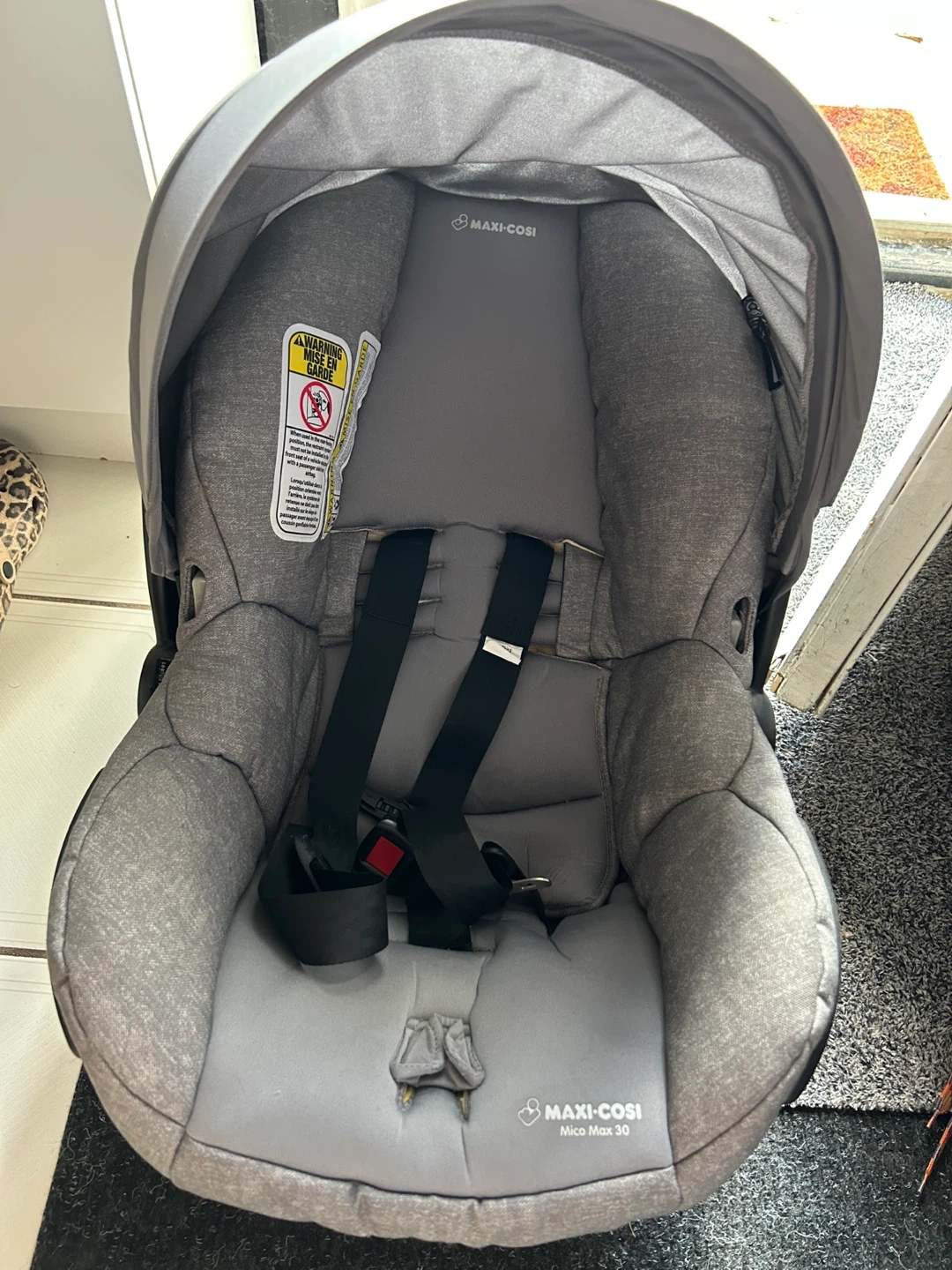 Selling a Maxi-Cosi Mico Max 30 infant car seat! It's in great condition and ready for a new little one. The manufacturing date is 2019 April 13 expires in 2027. I don’t not have the base unfortunately, but I do have the attachments to click into the stroller. Asking $50 for car seat. No stains, no tears. Only used for 5 months.