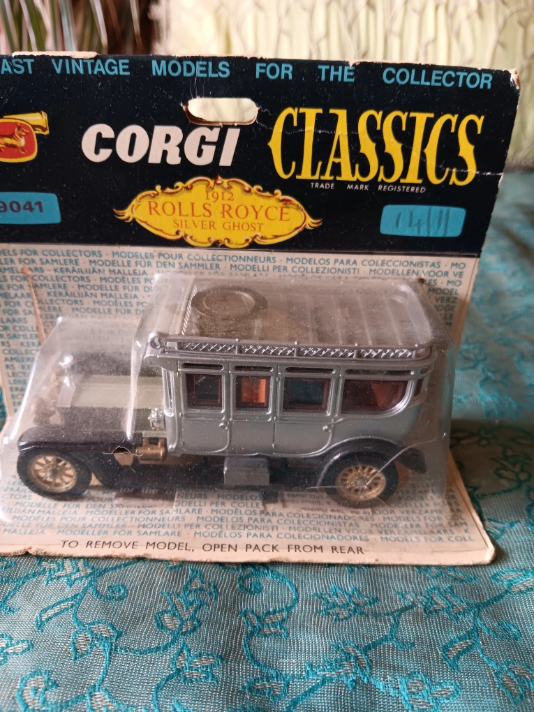Selling a Corgi Classics 1912 Rolls Royce Silver Ghost model car! It's in its original packaging and is a great vintage model for collectors. The box shows some wear, but the car itself is in excellent condition. A perfect addition to any collection!