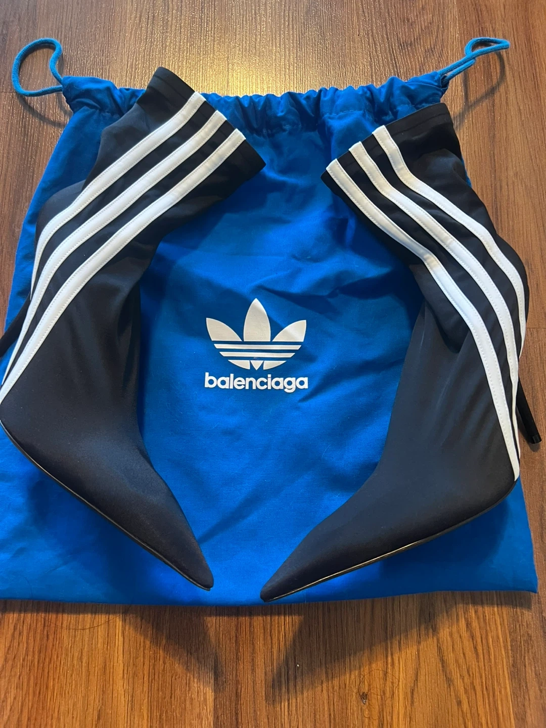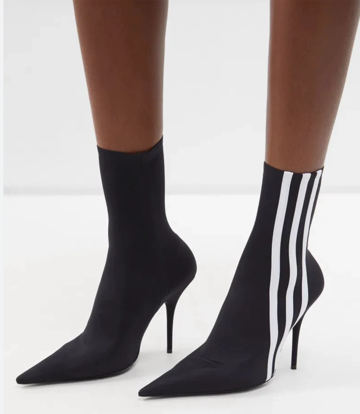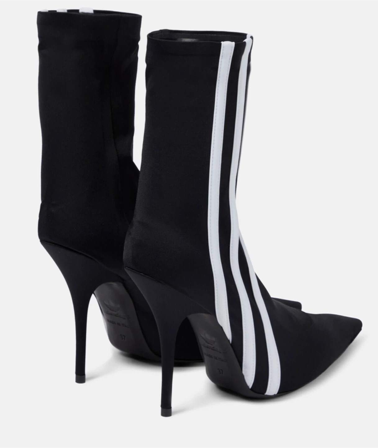 Authentic. Worn once indoors, only. Still in excellent brand new condition Purchased on ssense for $1250+ Balenciaga X Adidas Collaboration Knife Cut Boot Comes with original Balenciaga dust bag Tags: Designer boot, spandex boot, maximalist, casual, contemporary, collectible, IG inspired, minimalist, Balenciaga boots, authentic designer boot.