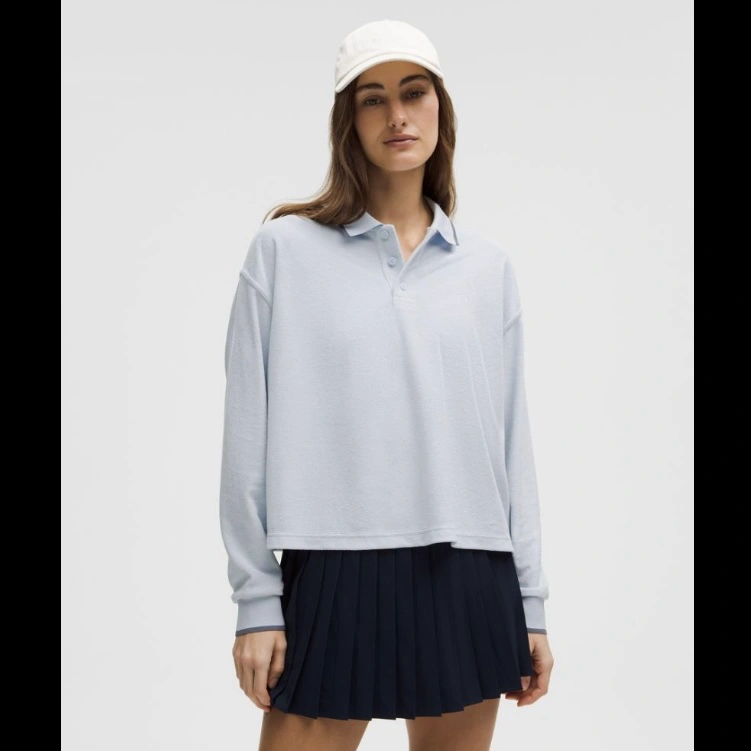 NWT Cotton Terry Relaxed-Fit Polo Shirt - Size S, Starch Blue