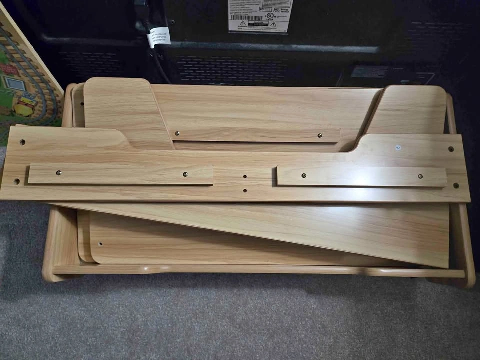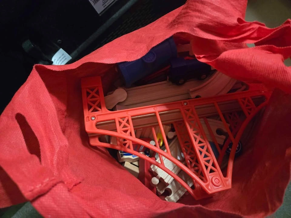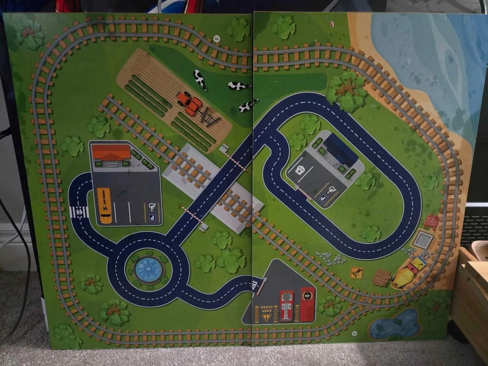 Selling kids train table that is in excellent condition, currently the main table is taken apart, parts are in a baggy. The pull out/storage tray is on wheels. Also comes with a bag of tracks/railway accessories and some trains.