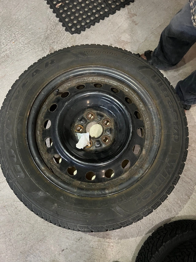 25Selling a set of Goodyear winter tires, size 185/65R15. They're mounted on steel rims and ready to go for the winter season! Set of 4. Tire size: P186/65R15. Tire brand: GOOD YEAR Ultragrip Winter. Rim size: 15 inch. Bolt pattern: 5 x 100 mm. Fits: Toyota Corolla/Celica/Scion, Subaru Impreza, Volkswagen Golf, Chrysler PT Cruiser, and more.