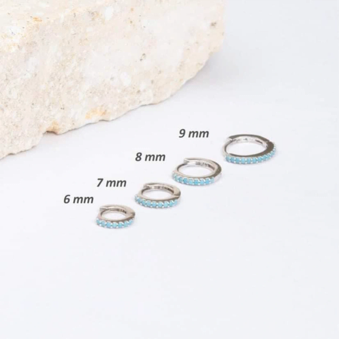 Cute turquoise huggie hoop earrings available in various sizes! Choose from 6mm, 7mm, 8mm, or 9mm to find the perfect fit for your ear. These are perfect for adding a subtle pop of colour to your everyday look