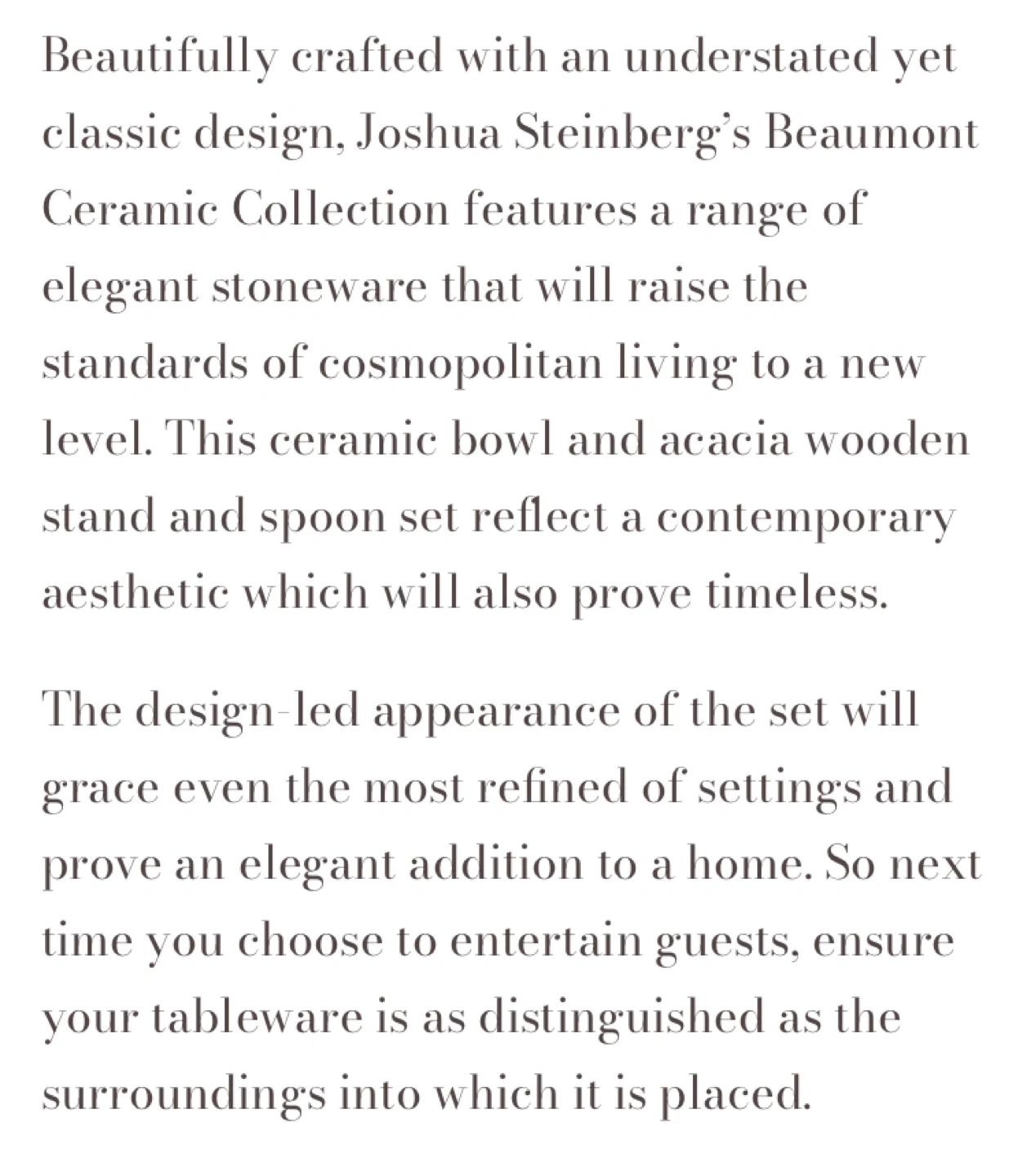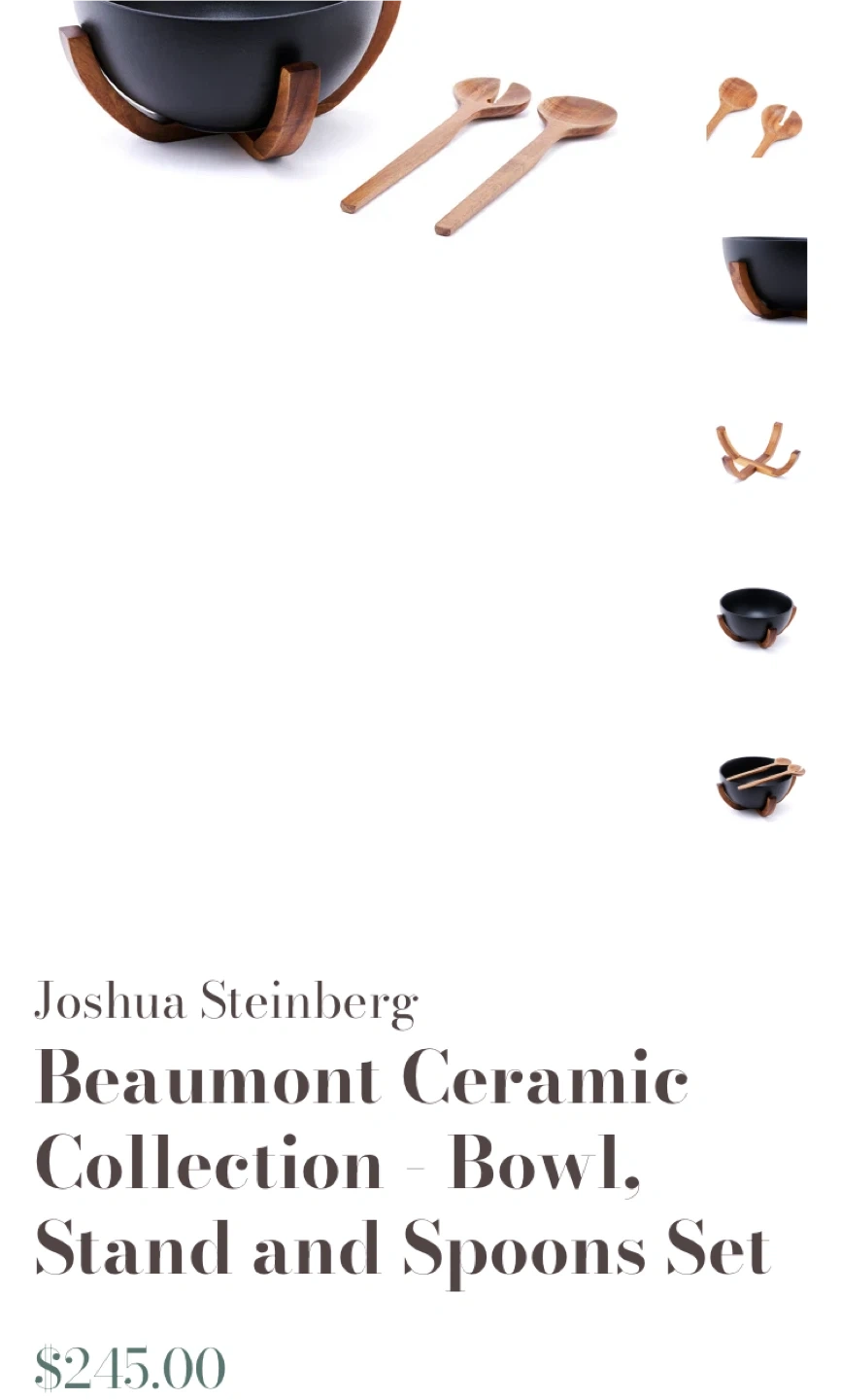 Joshua Steinberg Beaumont Ceramic Bowl, Stand & Spoons Set