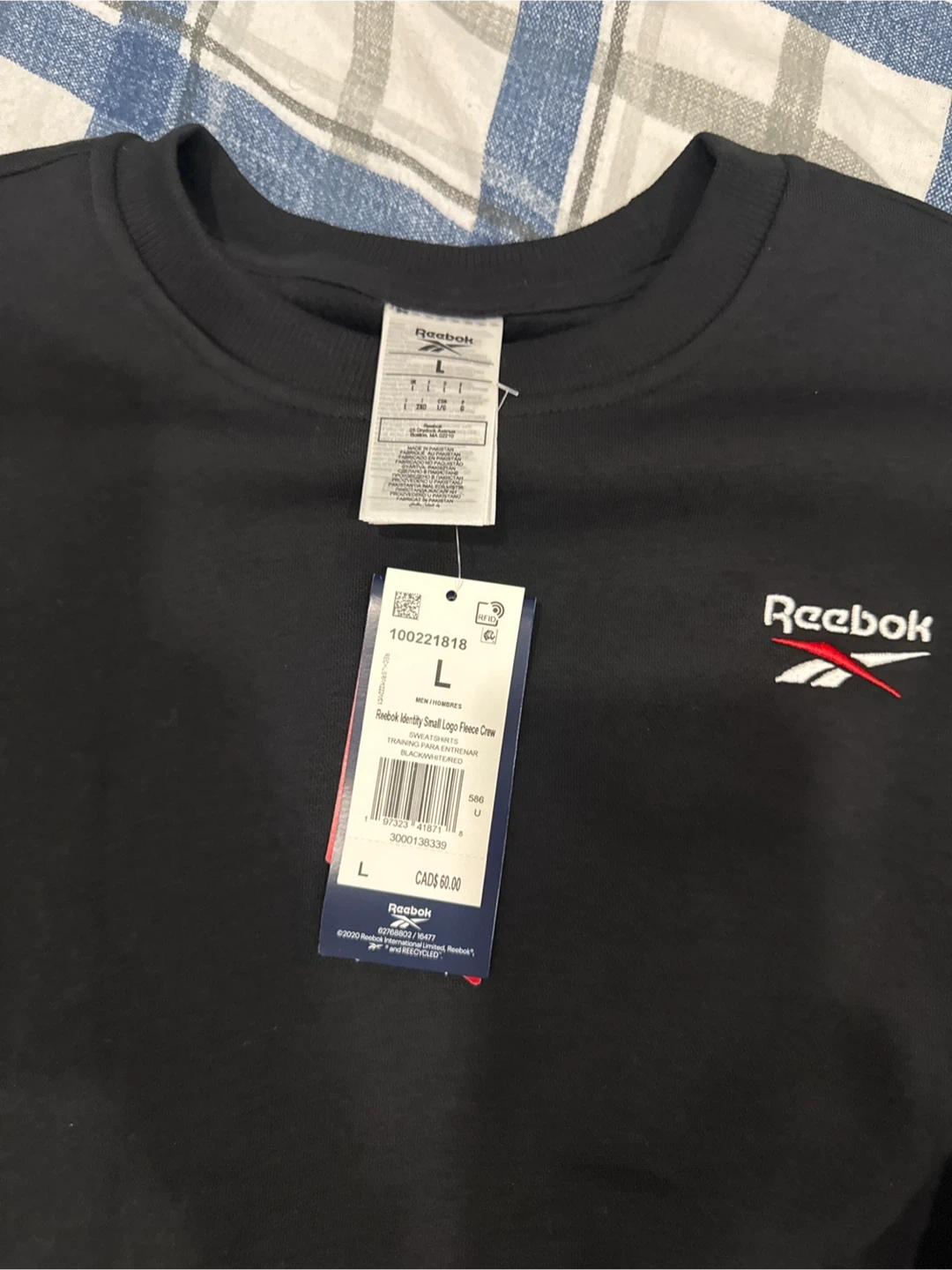 I'm selling a brand new Reebok Identify Small Logo Fleece Crew! It's a size L and features the Reebok logo. Originally bought for CAD$60.00. Perfect for staying cozy!