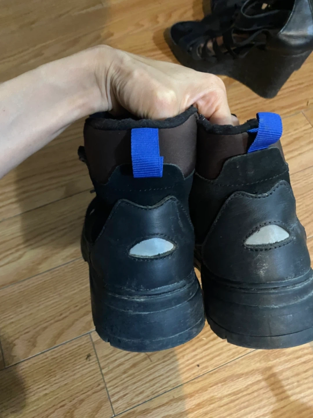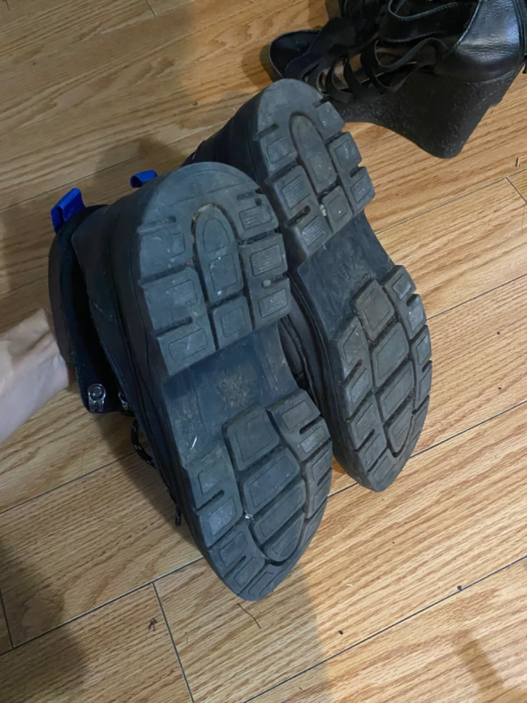 65Selling a pair of hiking boots in black. They show some signs of wear, but are still in good condition for hitting the trails!