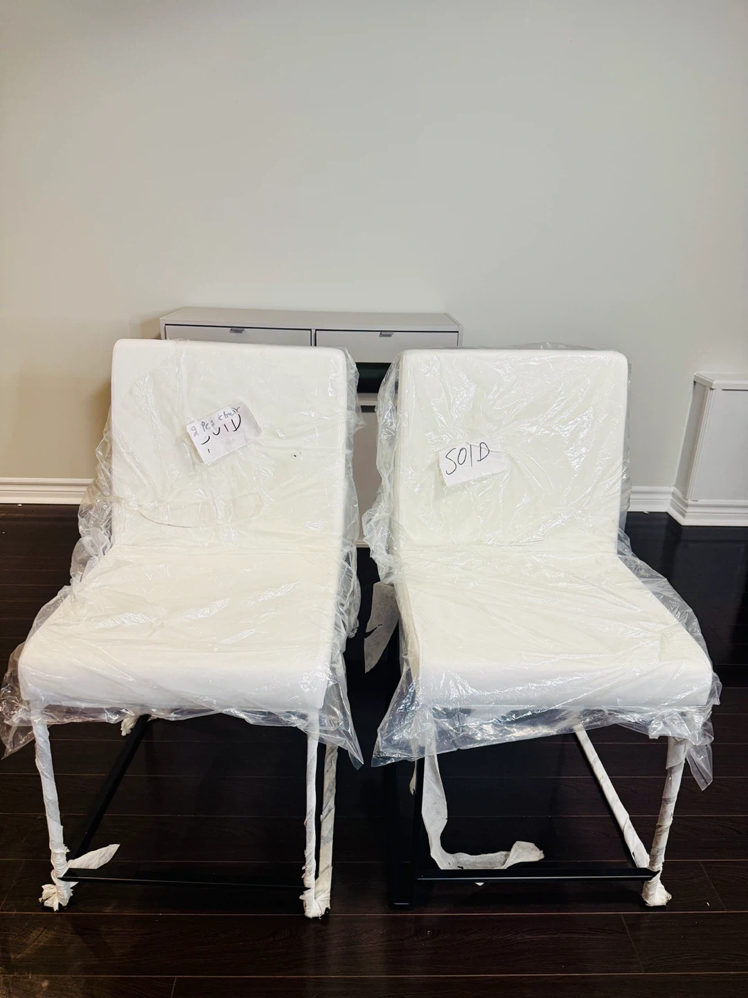 Selling a set of two office stools. They're white and have a modern look! They're unused and still wrapped in plastic.