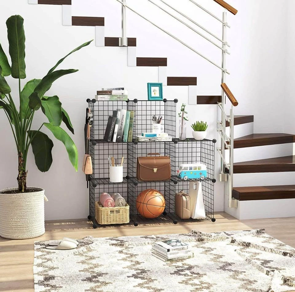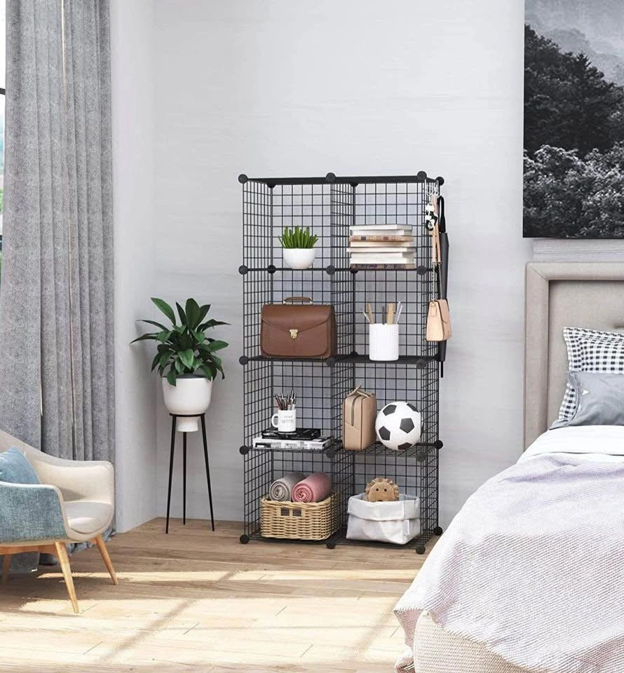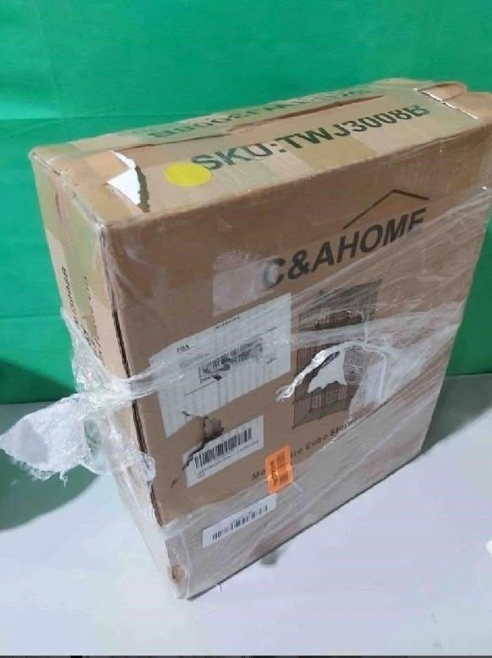 60Open box, distressed packaging. C&AHOME wire storage cubes, metal grids bookshelf, modular shelving units, stackable bookcase, 8 cubes closet organizer in black. Package dimensions: 38x32x14cm. Let me know if you're interested!
