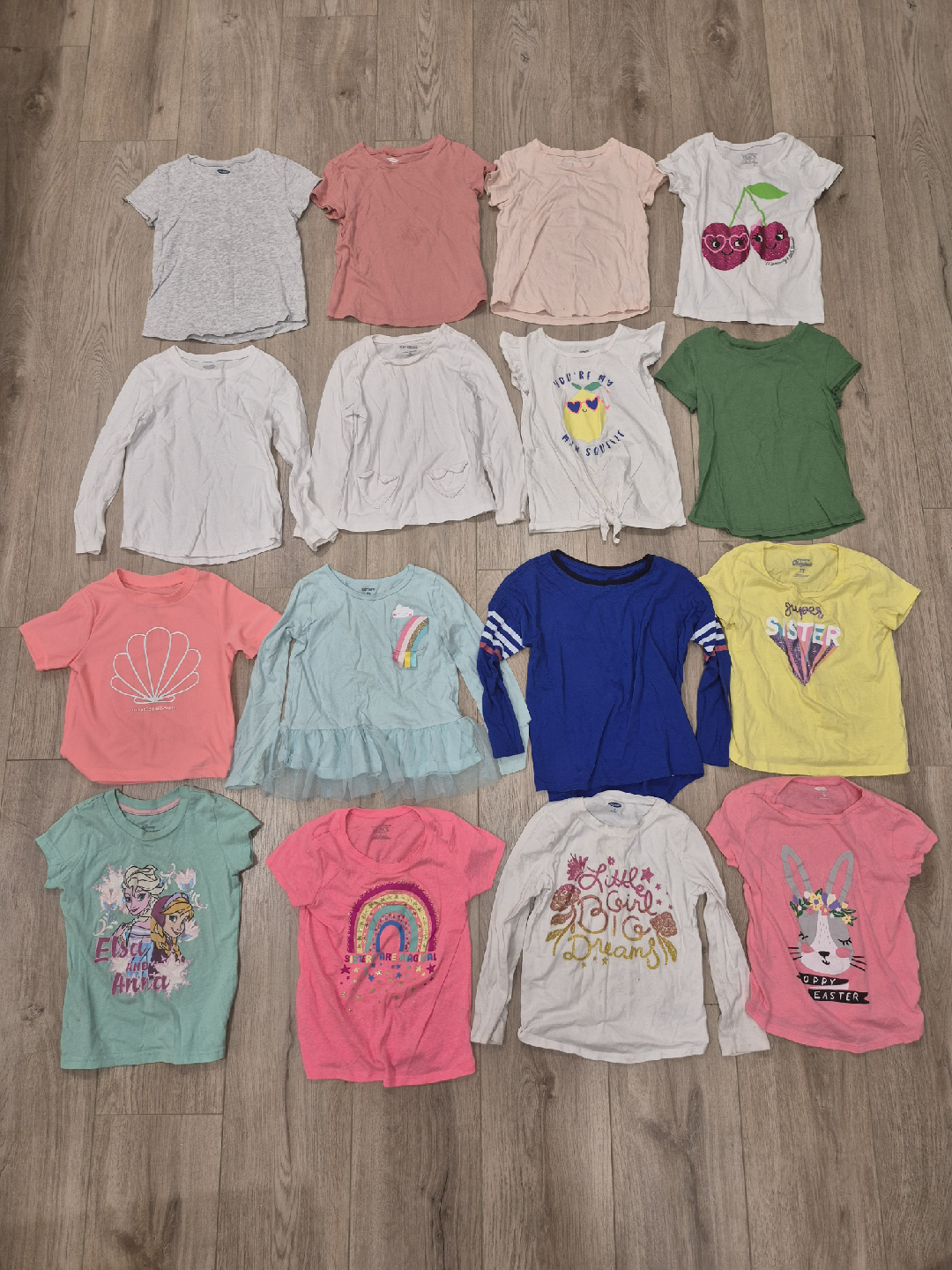 This is a used lot of girls size 5T shirts, perfect for everyday wear. The shirts are in good condition. I have included a variety of styles, including short-sleeve and long-sleeve options.